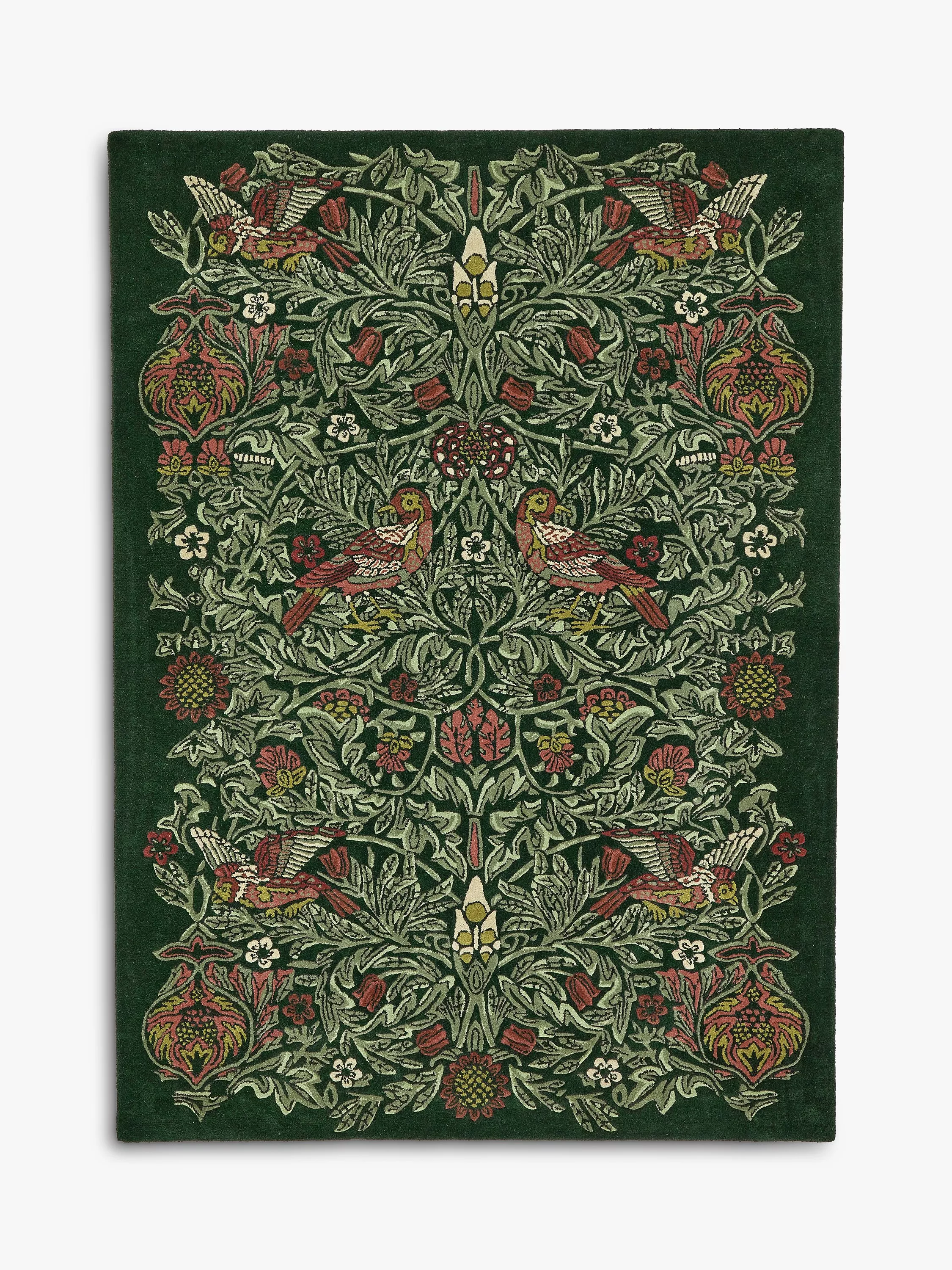 Paired birds alternate between perched and in-flight in this serene 1878 design from William Morris.