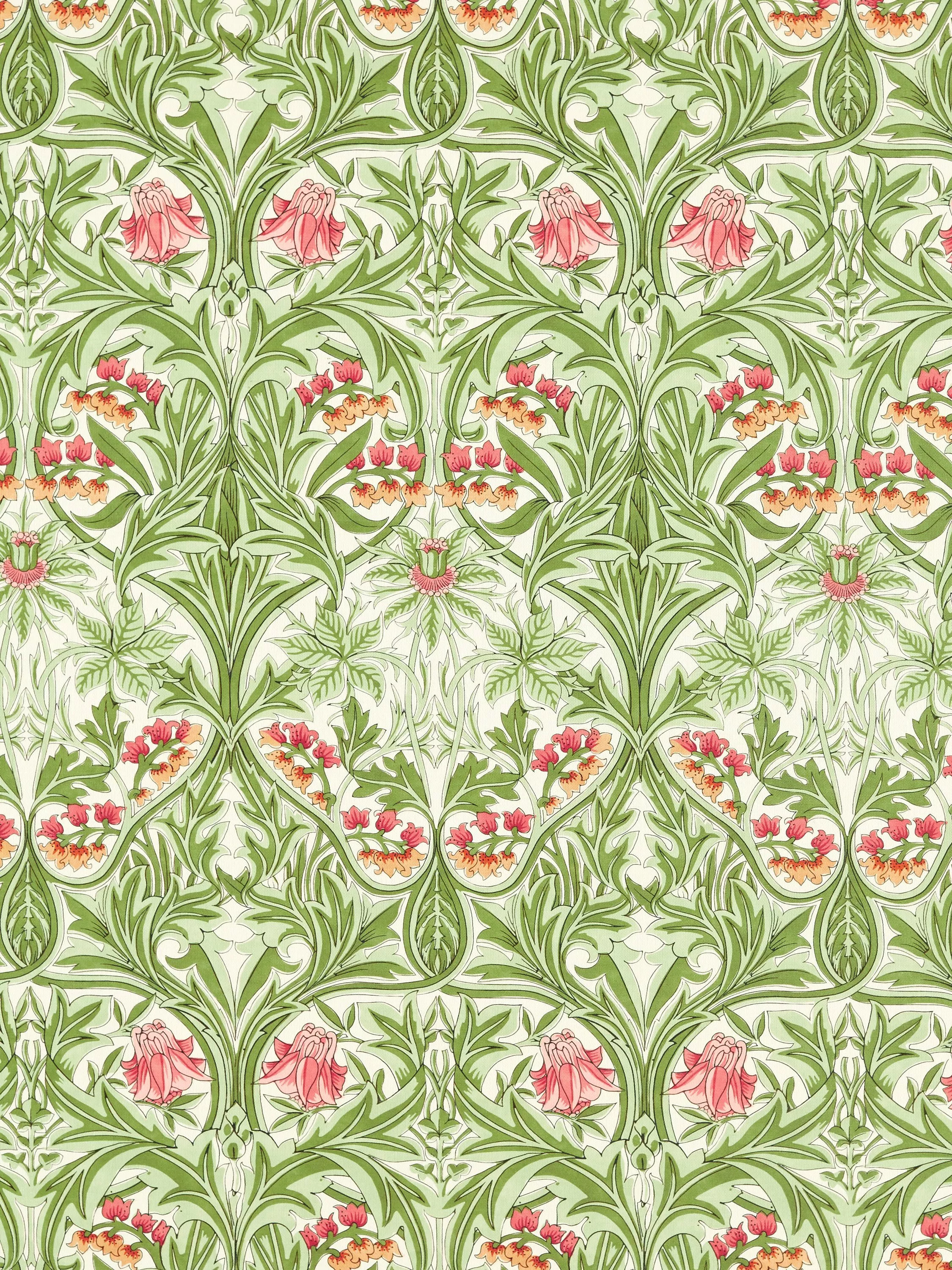Morris & Co.Bluebell Linen Blend Furnishing Fabric, Leaf Green/Sweet Briar
