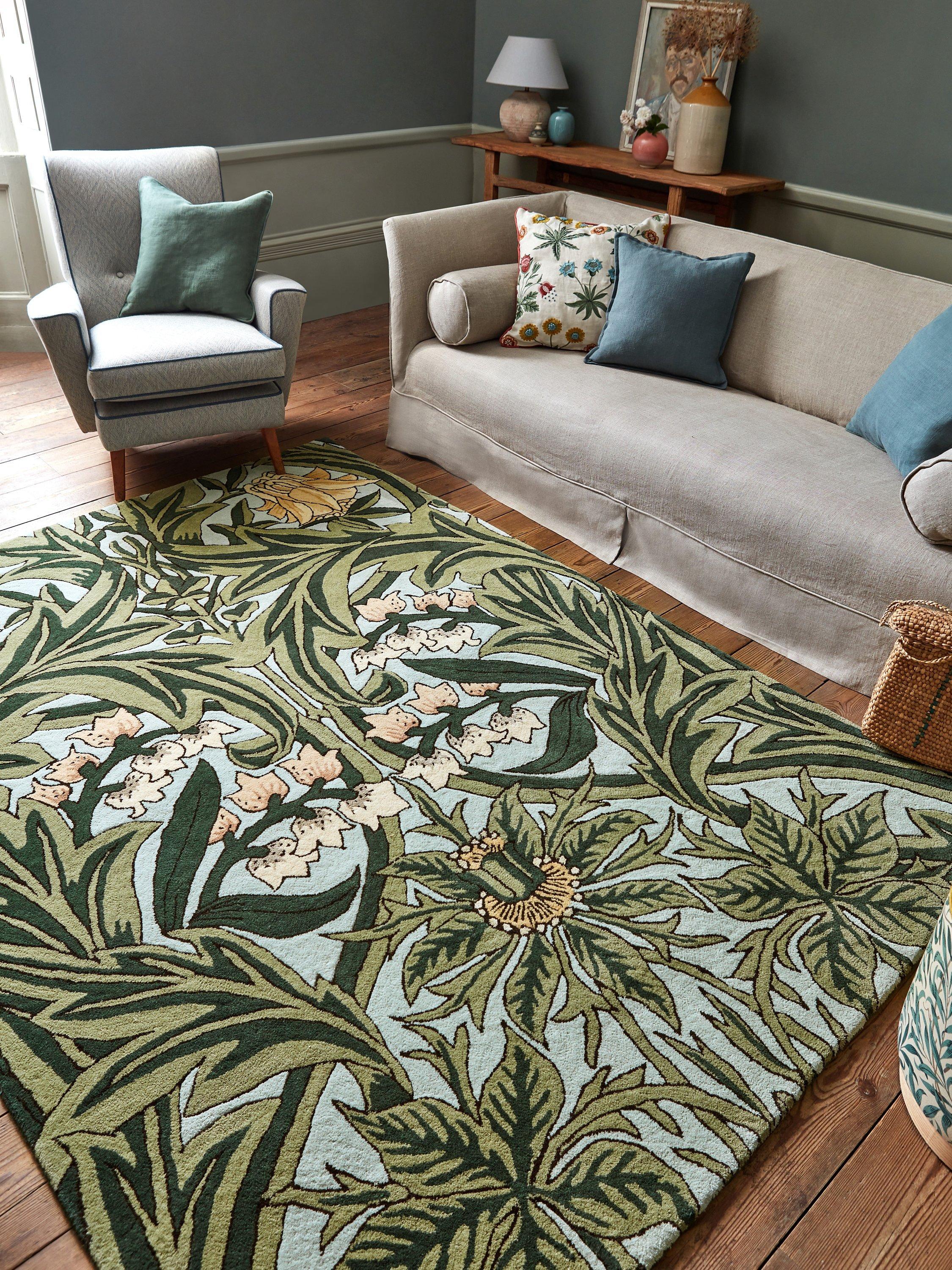 Hugely striking and angular, Bluebell is an 1876 William Morris design that takes as its subject the charming bluebell flower. Known for carpeting forest floors in spring, this beautifully hand-tufted rug offers great symmetry to any room.