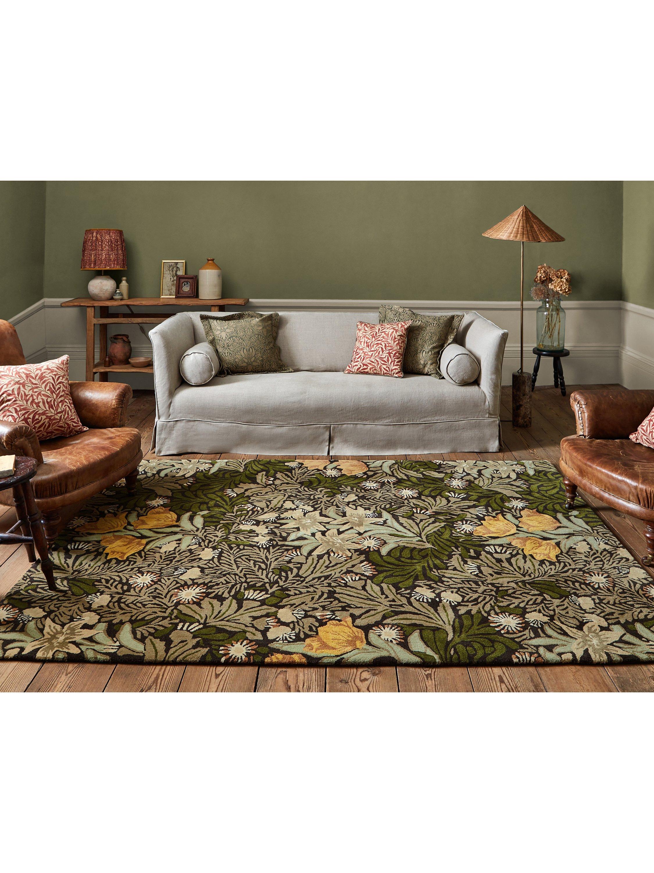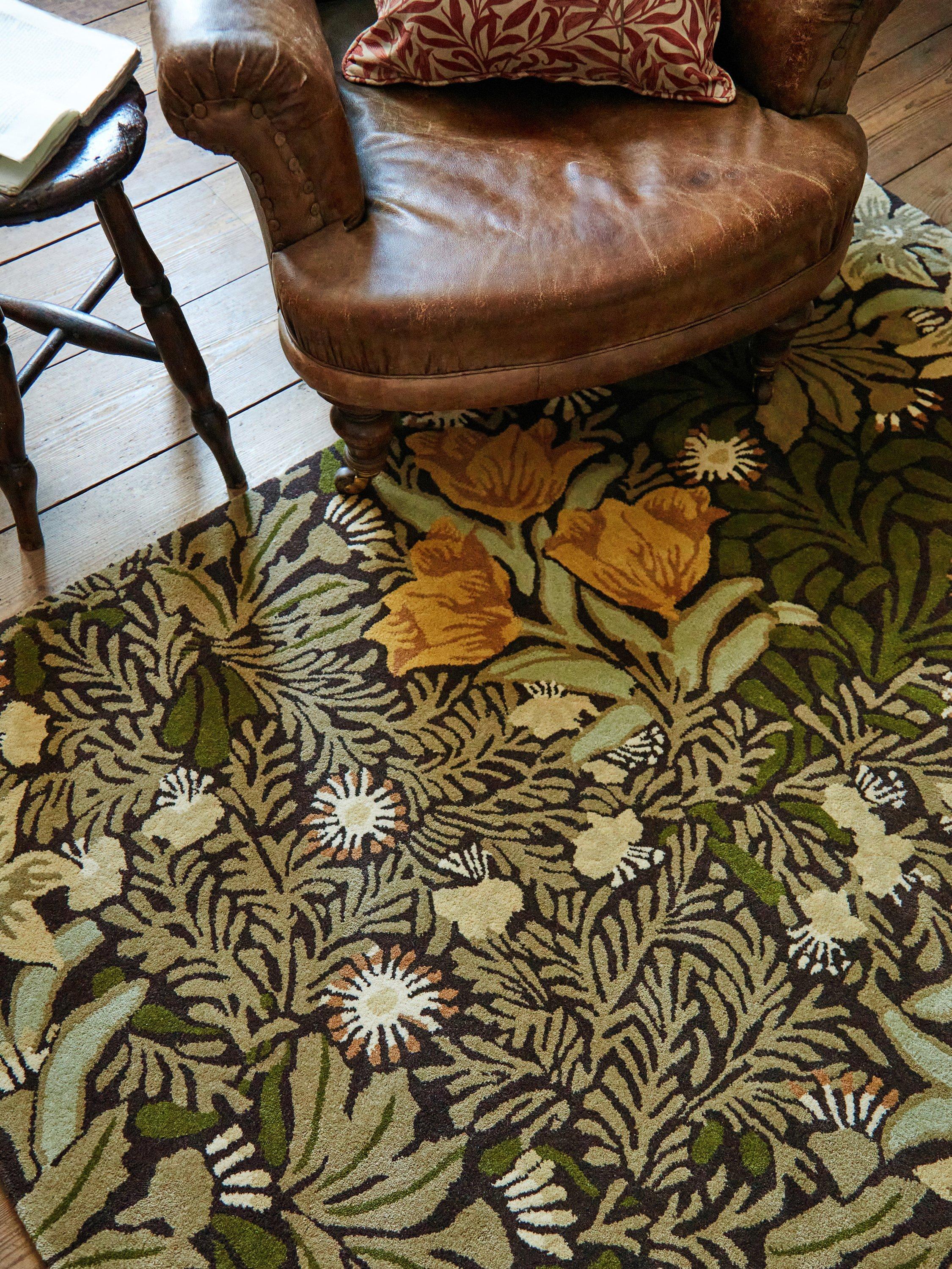 Bower, an 1877 design, depicts a floral wonderland of foliage ripe with life. Recreated as a 100% wool rug with a hand-tufted finish, the colourway adds a delightfully moody hue to interior spaces.