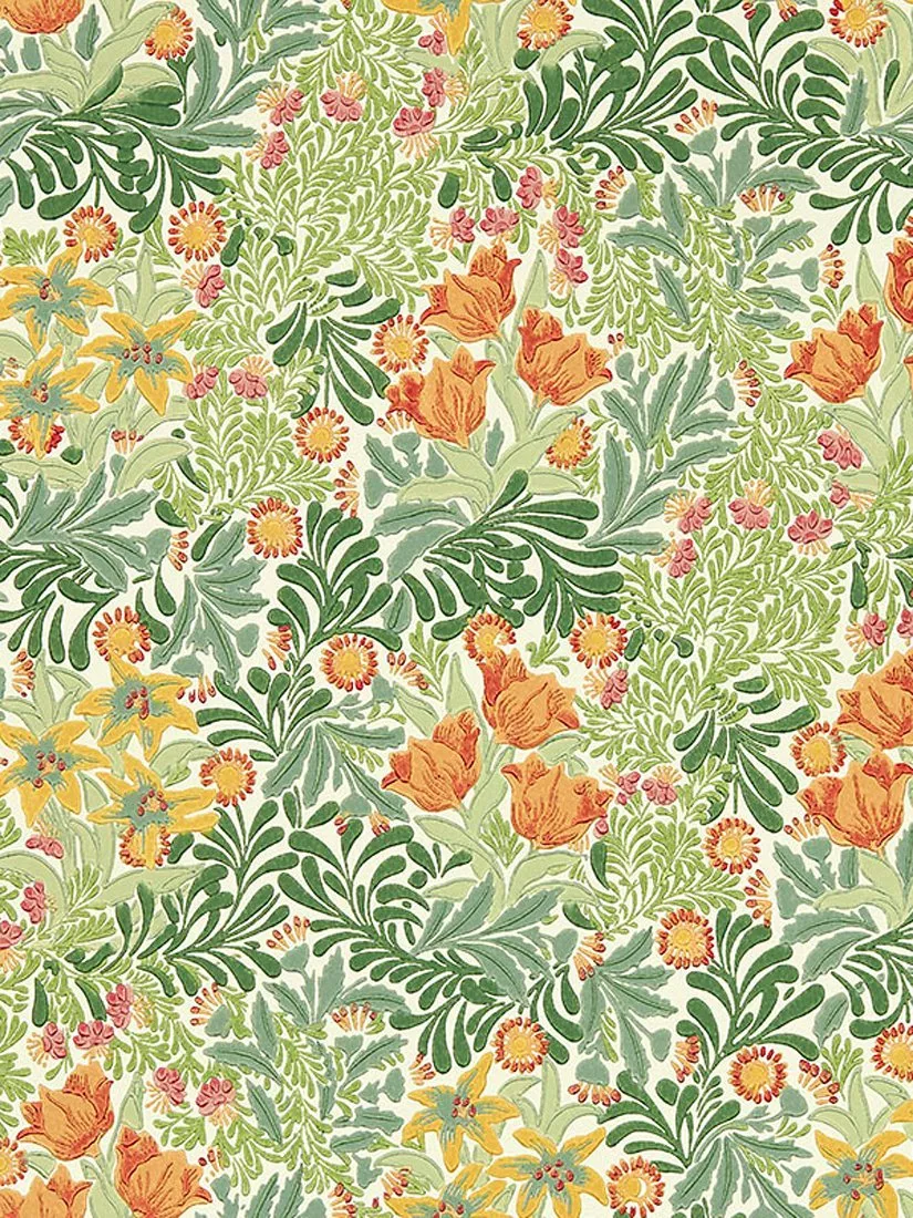 Rising to the surface of this densely packed design is a forest floor full of floral delight. Influenced by the composition of medieval woodcuts, William Morris designed Bower in 1877 as a vibrant tribute to the forest walks and flowers he so adored.