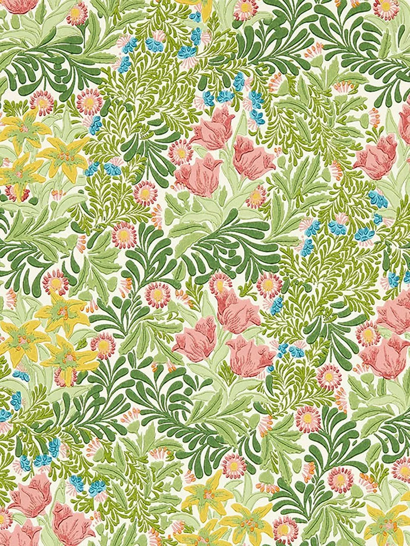 Rising to the surface of this densely packed design is a forest floor full of floral delight. Influenced by the composition of medieval woodcuts, William Morris designed Bower in 1877 as a vibrant tribute to the forest walks and flowers he so adored.