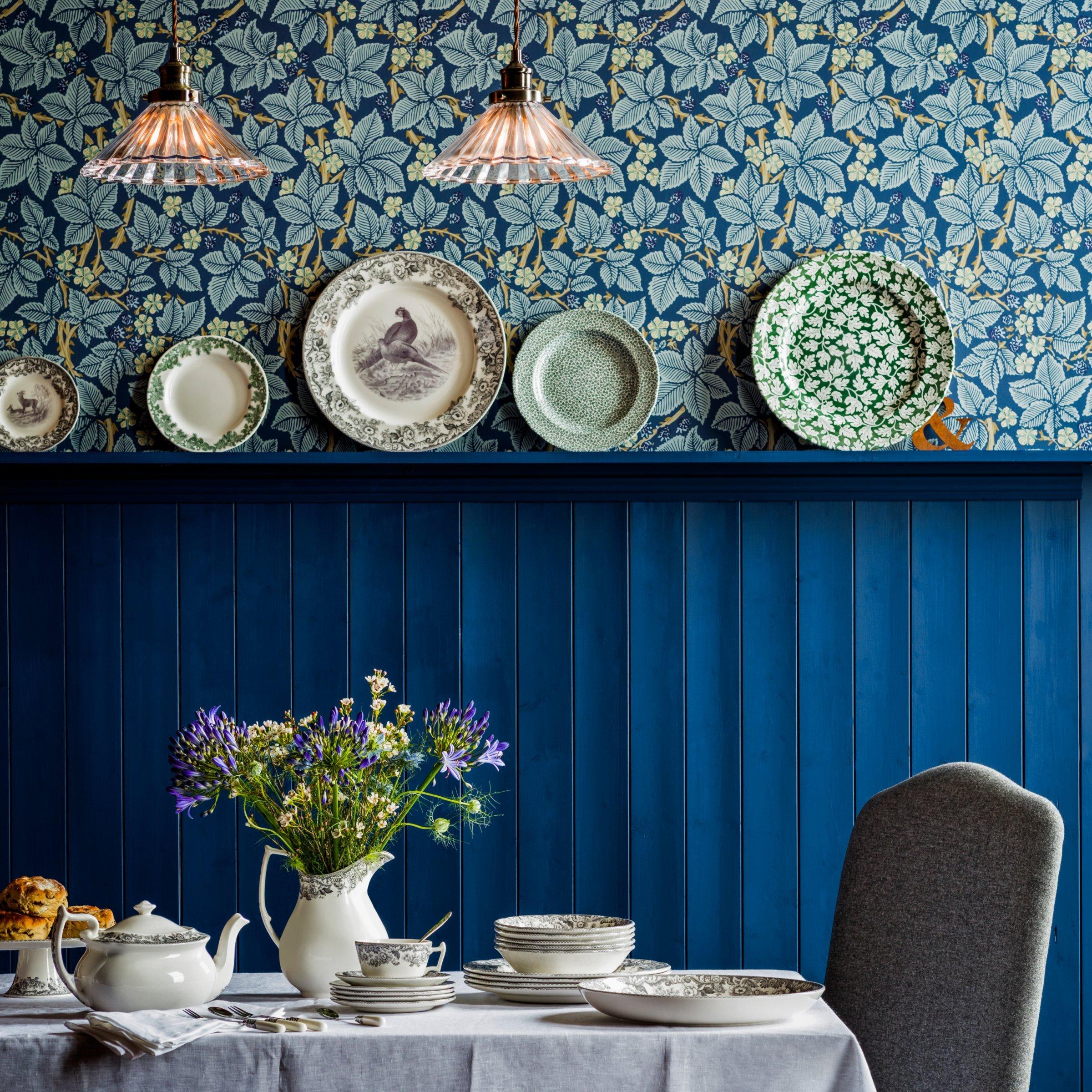 Designed in 1879 by Kate Faulkner, this pattern features blackberry briars with berries and flowers.