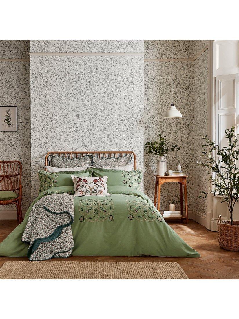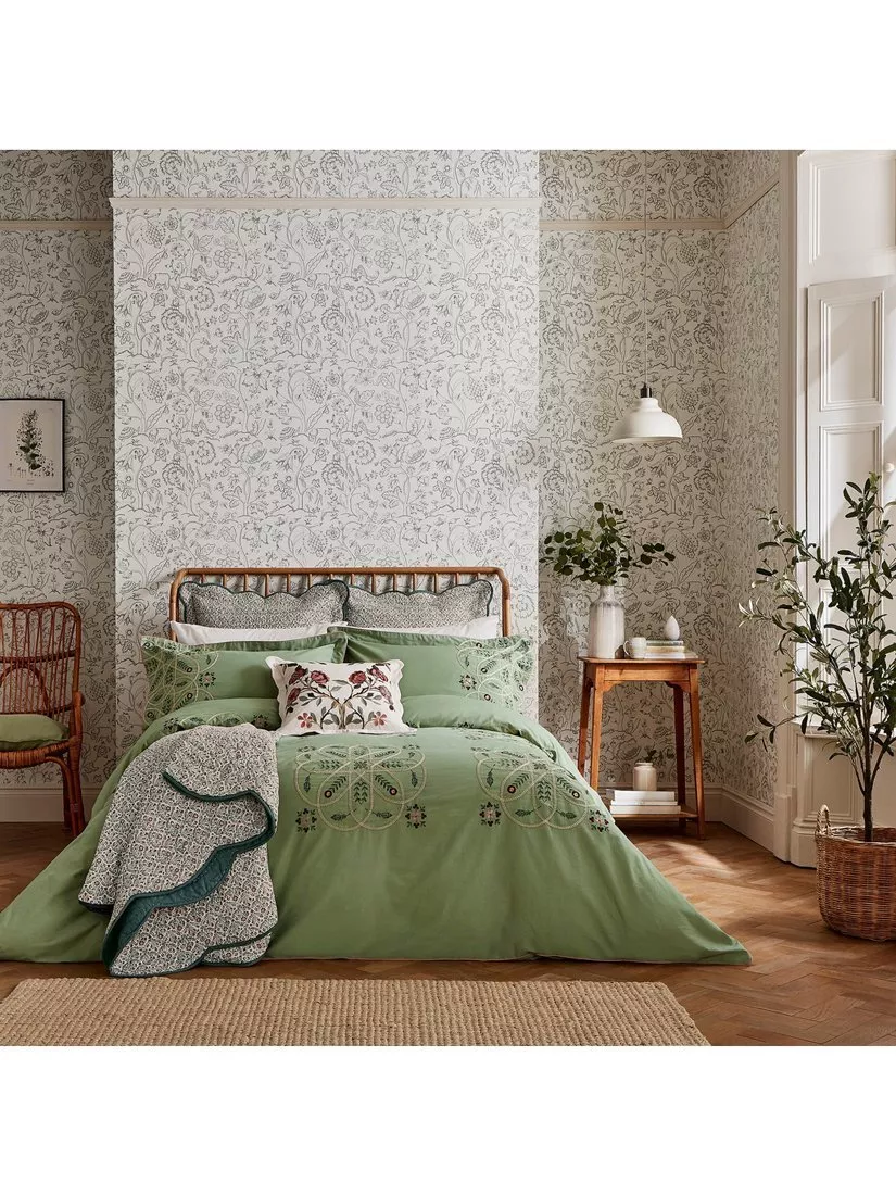 A real compendium of works from Arts & Crafts legends, Brophy Embroidery combines patterns from Andrew Brophy (1844-1912) and May Morris (1862-1938), daughter of William. Maintaining Brophy's curved trellis structure, Morris & Co. have placed May's playful floral and leaf motif to add delicate notes of natural whimsy.