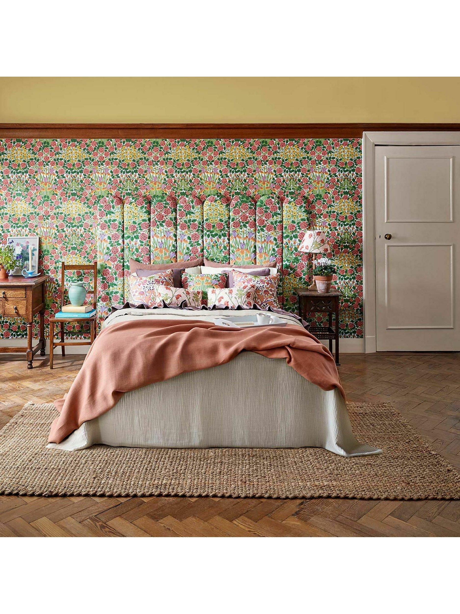 Campanula's gloriously flat design, a densely populated frame of vibrant flowers, is given another layer of intensity with the supercharged colour stories. Alan Francis Vigers produced Campanula in 1900 and had it printed at Jeffrey & Co. wallpaper printers, one of many marks of similarity between himself and William Morris's Morris & Co.