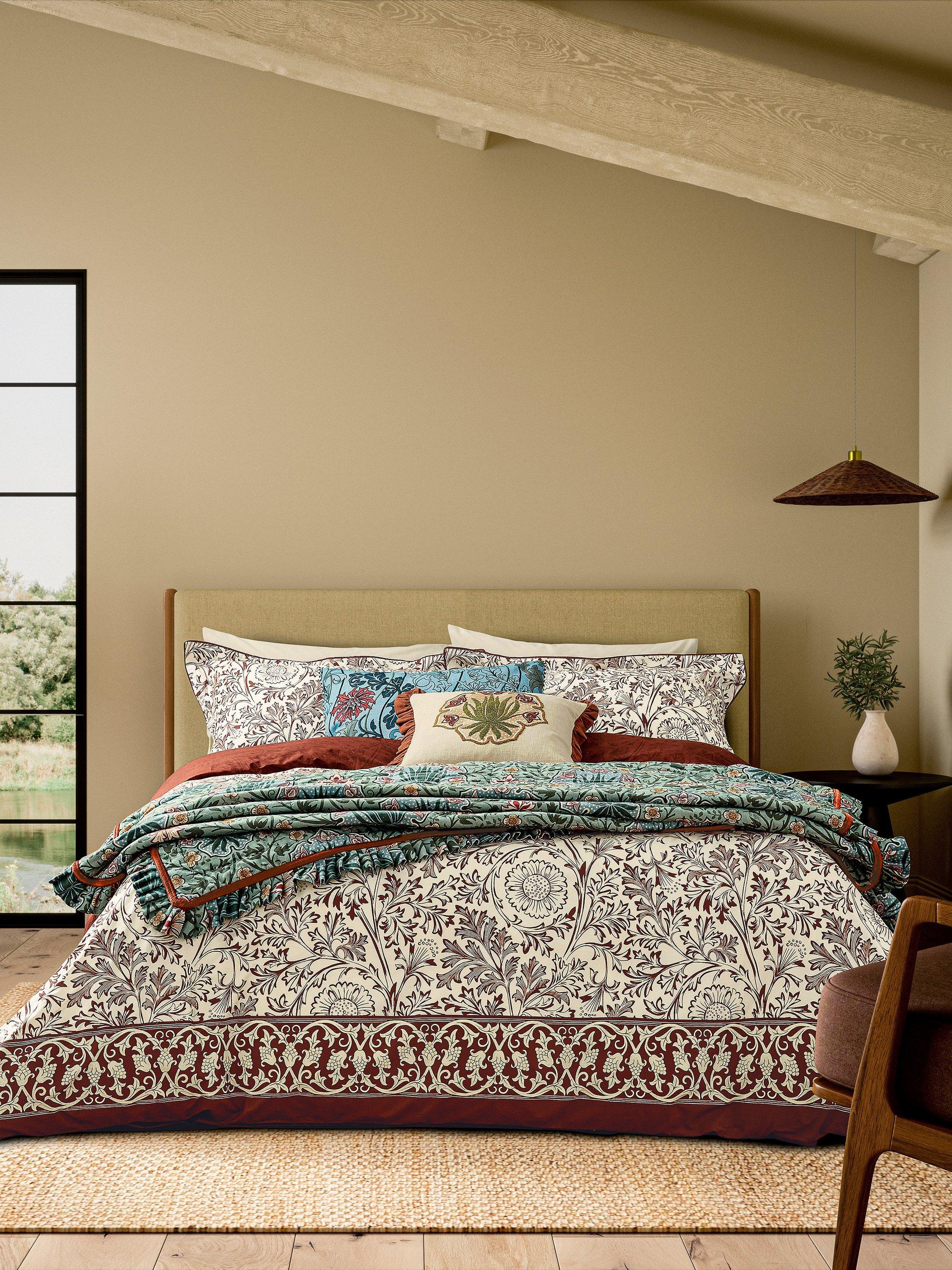 This design has been beautifully transformed for bedding, digitally printed across 200 thread count cotton percale and featuring a russet coloured reverse.