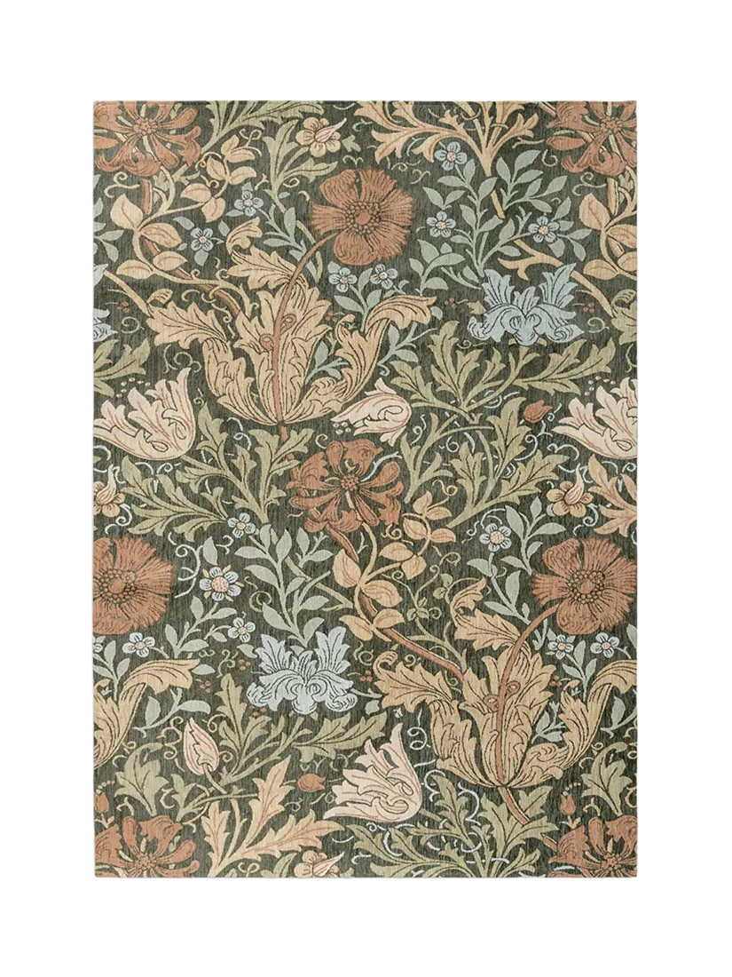 Originally designed in 1895 by John Henry Dearle for Compton Hall, this pattern of blooms and leaves arranged along a diagonal axis is beautifully reimagined here as a jacquard-woven rug.