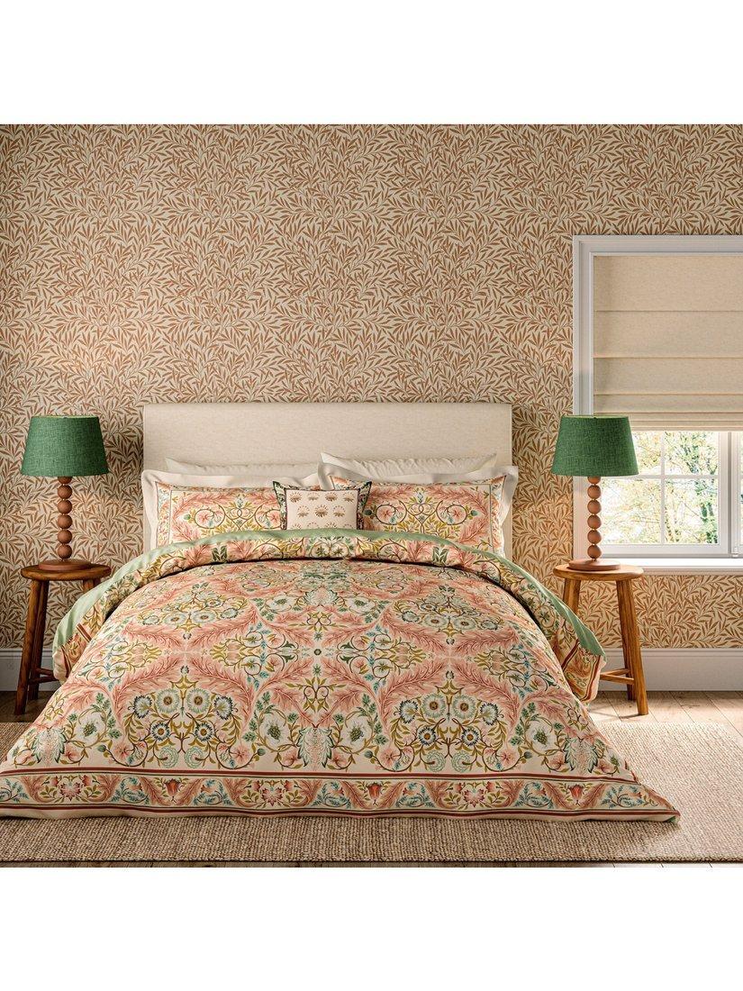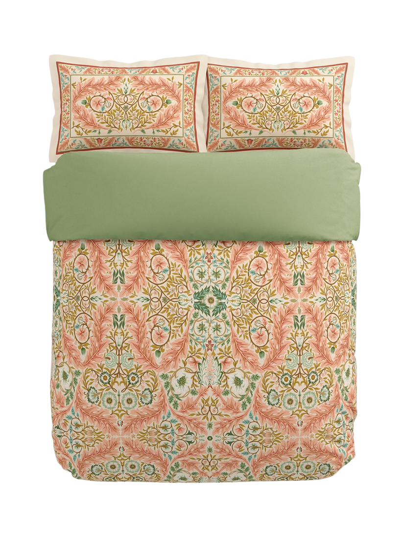 Scrolling acanthus leaves, tendrils and garden flowers are rendered with renewed grace and elegance in the V&A and Morris & Co. collaboration, reflecting William and May Morris’ remarkable talents. Originally crafted as an embroidered wall-hanging, now held in the V&A collection, the "Earthly Paradise" set reimagines their original creation with a soothing, lighter palette, perfect for a tranquil night’s sleep.