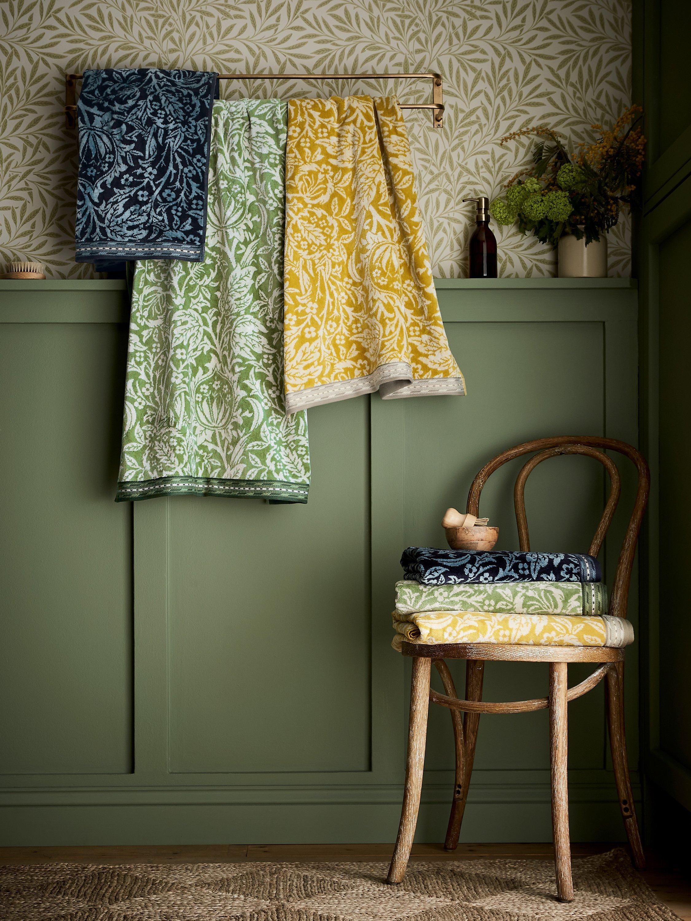 Morris & Co. Elmcote is a magnificently brooding 1900 design from designer J.H. Dearle. Dearle's training as William Morris's tapestry apprentice is beautifully translated for this towel design, which features gallant seedheads and miniature flowers connected by swirling foliage. A decorative hem completes the towel design, which is made in a 600gsm cotton modal blend.