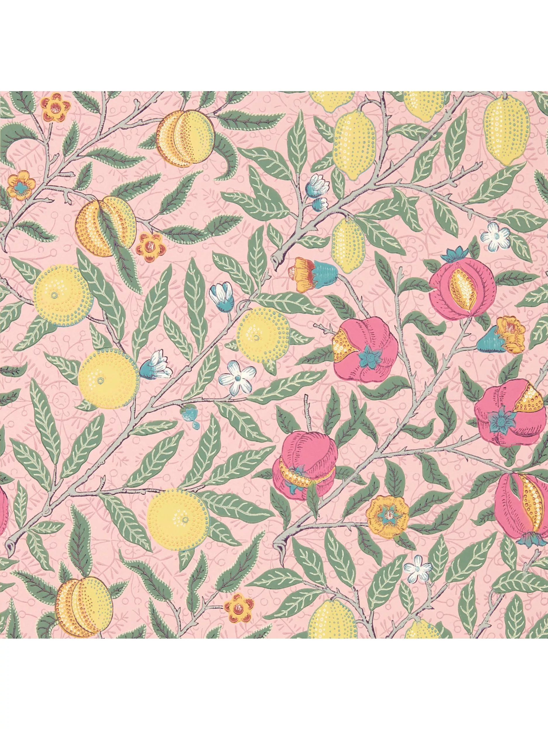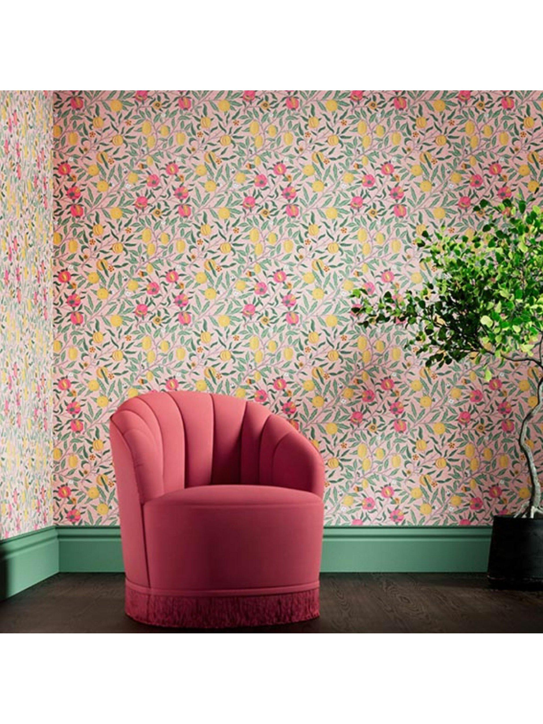Tempting pomegranates or zesty lemons, which do you see? Whatever your perception, you're looking at one of the first wallpapers Arts & Crafts designer William Morris ever made. Made in the UK and reimagined in three colour stories, from popping pinks to serene blues and verdant greens.