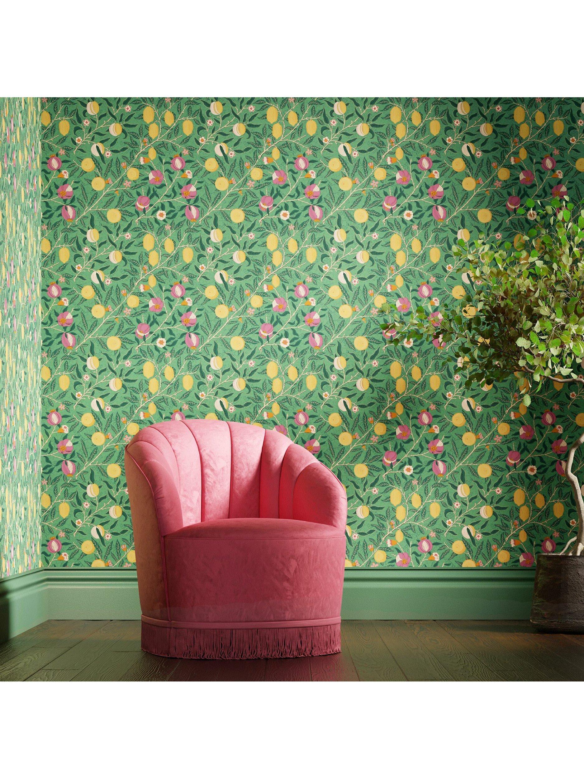 Tempting pomegranates or zesty lemons, which do you see? Whatever your perception, you're looking at one of the first wallpapers Arts & Crafts designer William Morris ever made. Made in the UK and reimagined in three colour stories, from popping pinks to serene blues and verdant greens.