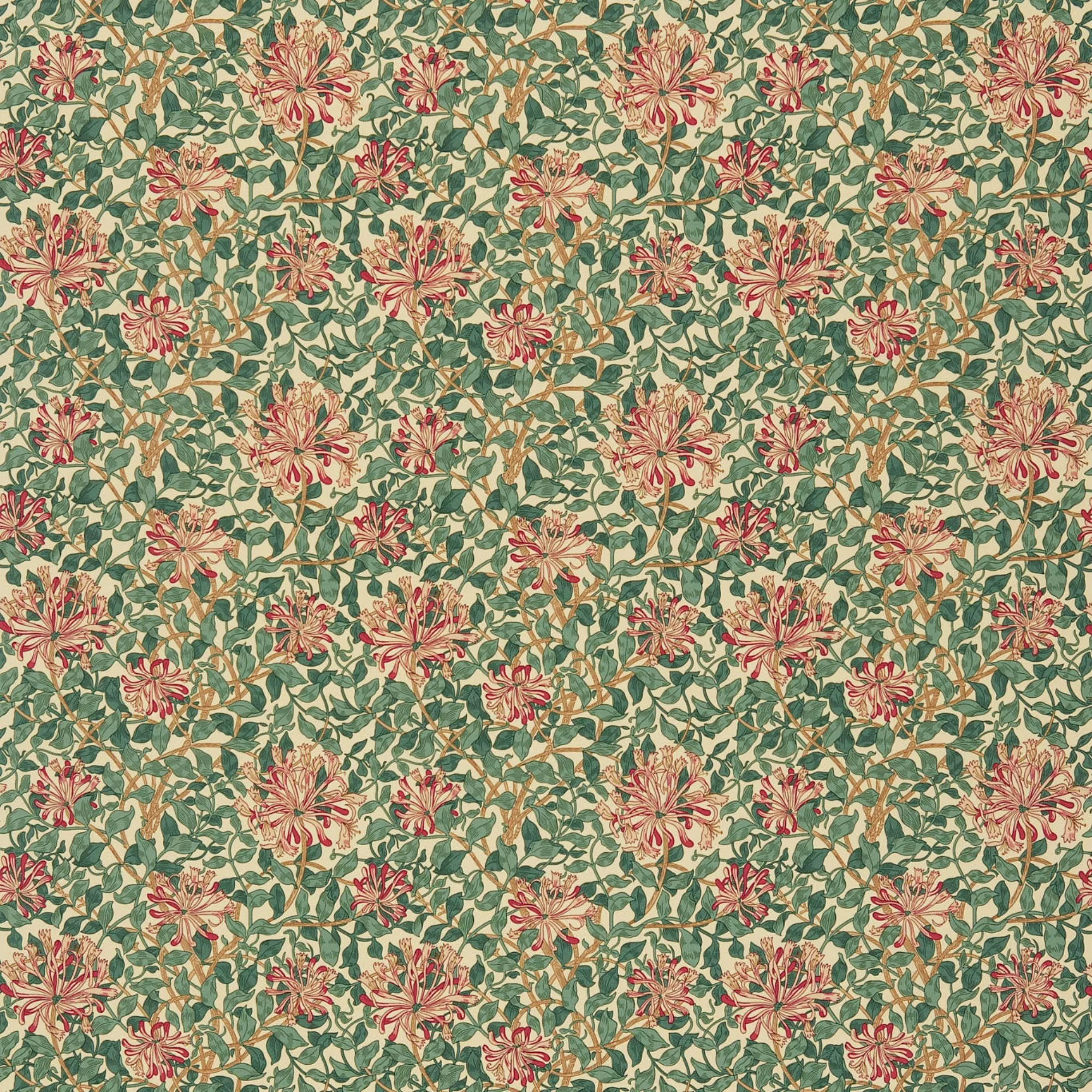 Honeysuckle, designed by May Morris in 1883, is a realistic arrangement of the climbing scented flower with captivating entwining leaves. Although best known for her work with embroidery (May took over the embroidery department of Morris & Co. when she was only 23!), Morris's youngest daughter also designed several wallpapers. Honeysuckle is reimagined based on samples in the Morris & Co. archive and is available on printed cotton.