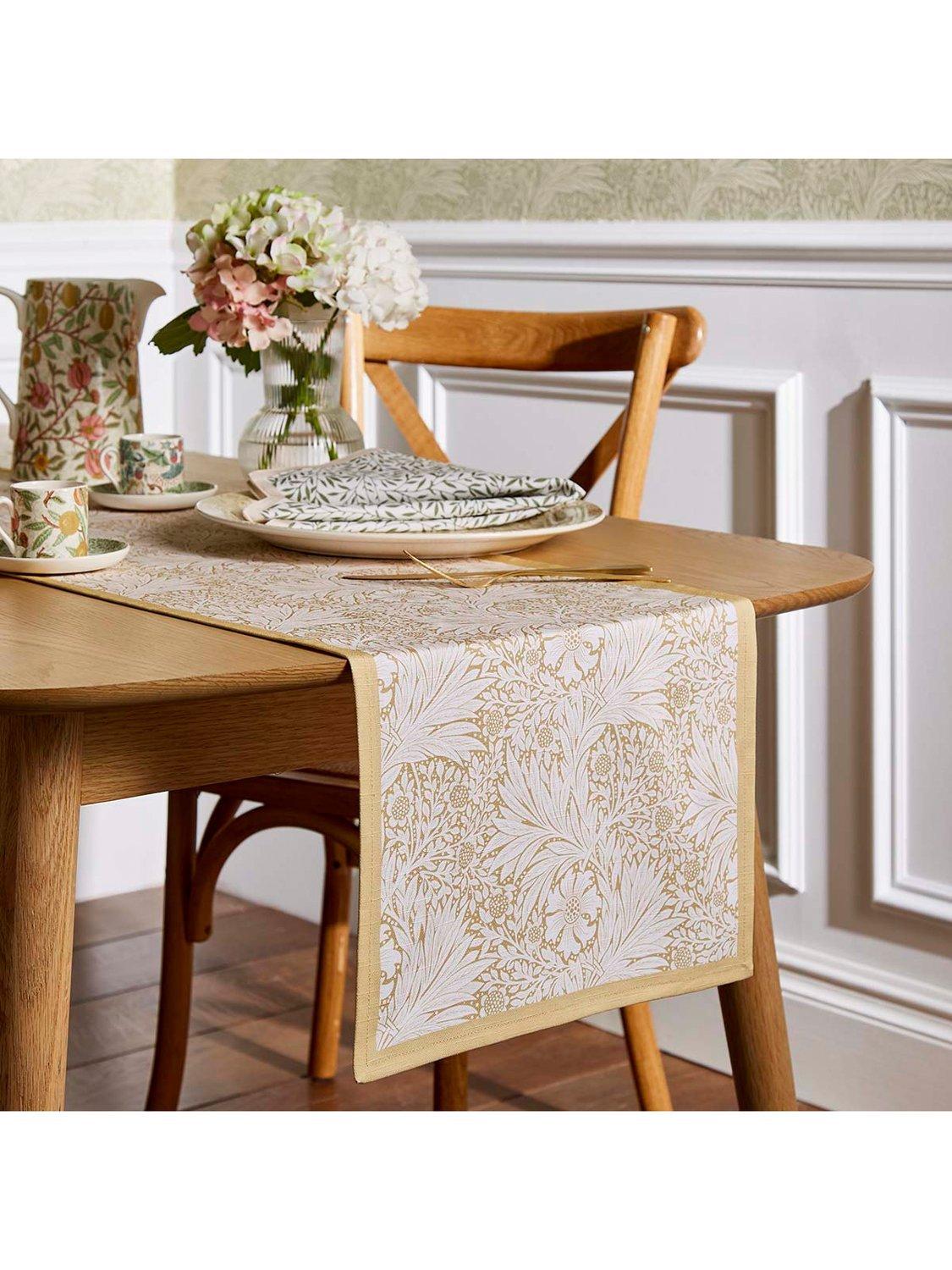 Bring a touch of heritage design to your table with this runner decorated with Morris & Co.'s Marigold design, a classic floral pattern from 1875. The pattern is from the archive of Arts and Crafts artist and designer William Morris. Made of pure cotton, it's machine washable for everyday use. Layer with matching napkins and tableware for timeless dining.