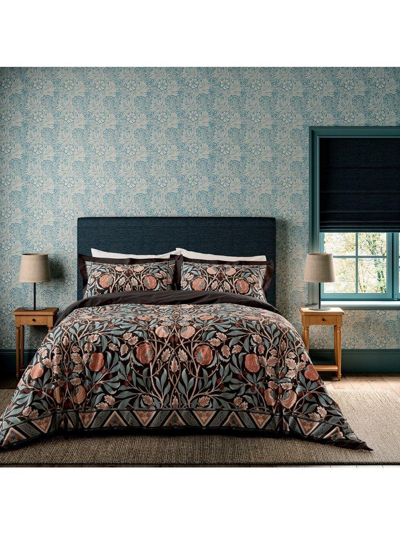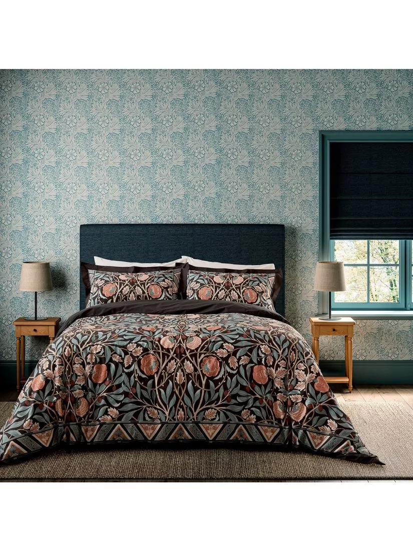Enhance your bedroom with the timeless beauty of Olive and Rose, a reimagining of a striking 1880 design by William Morris and his daughter, May.