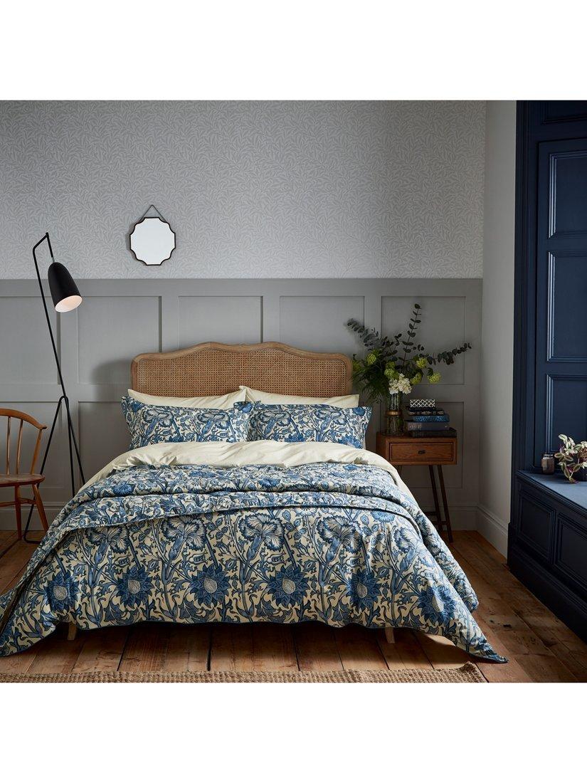 Pink and Rose is an updated version of an original William Morris print from 1890. Recreated in classic, calming blue, it features piped edging for a sophisticated finishing touch.