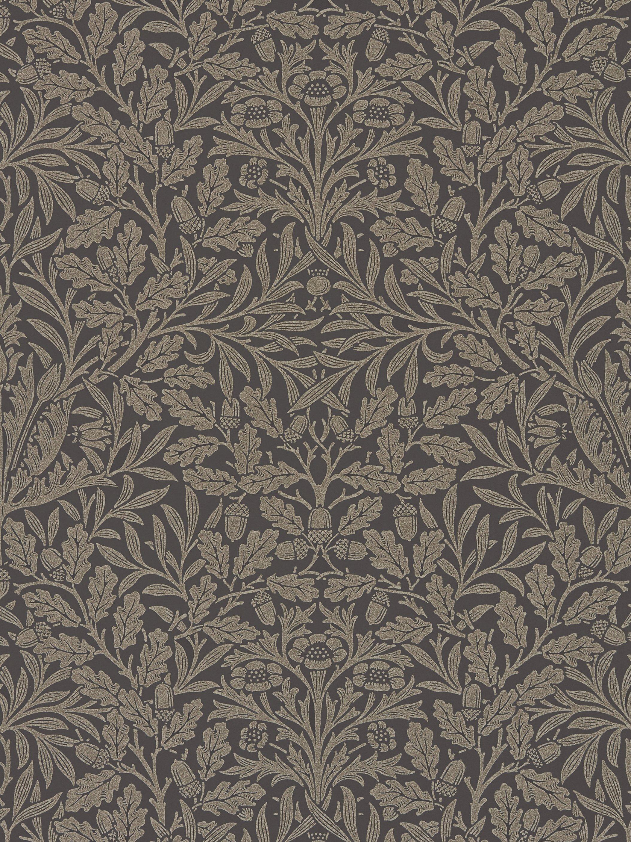 A pretty monotone wallpaper, designed by William Morris in 1879. This beautifully simplified representation of British nature is available in six colours, some using opaque inks and others using fine textured sand mixed with metallic particles. The original blocks were used to create the artwork.