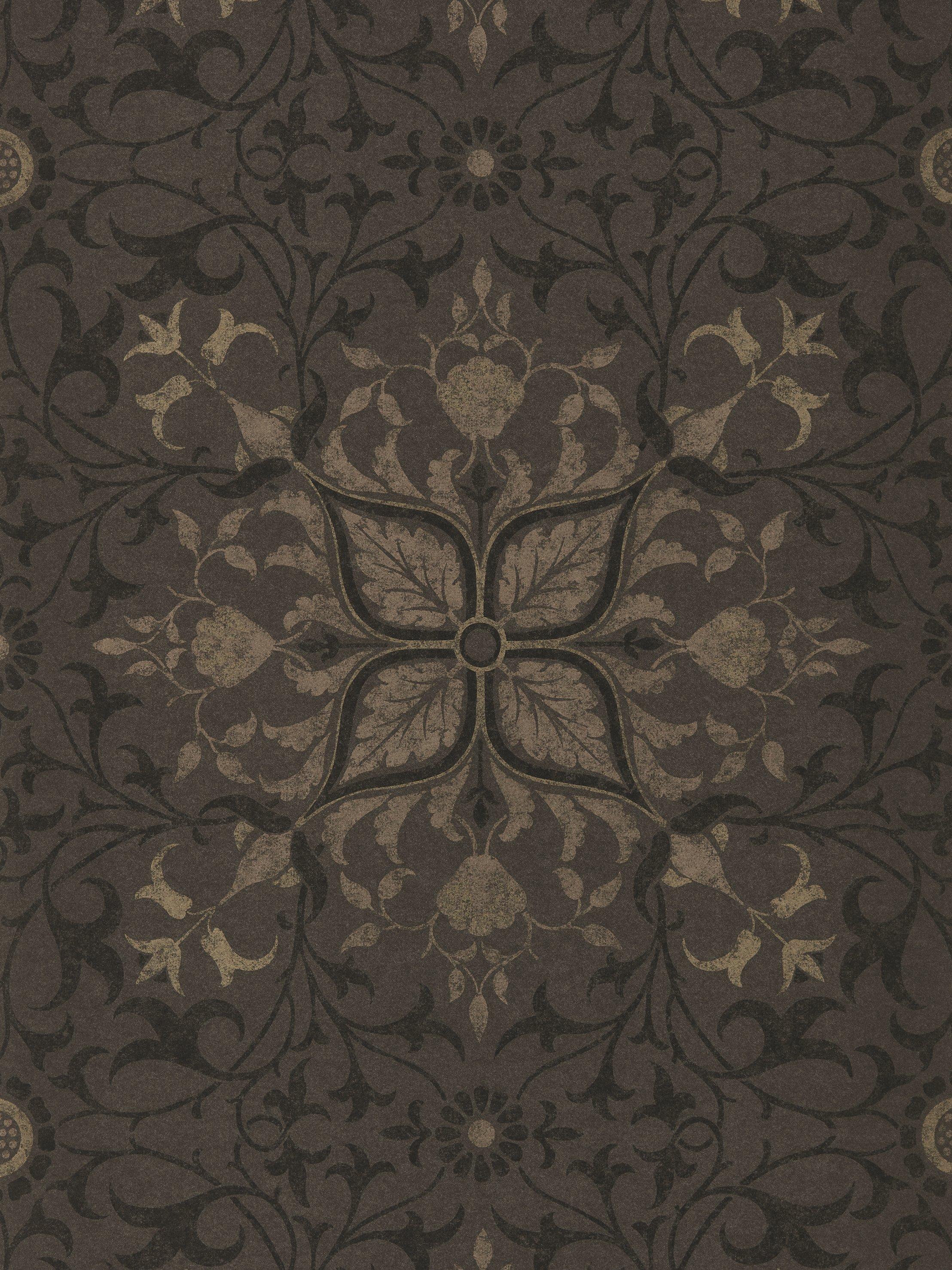 The original wallpaper, dating back to 1895, is one of only five ceiling papers created by Morris & Co. It is a textural wallcovering which depicts cornice work. Machine printed for the first time, it is available in four colourways, some coloured in dramatic hues, mixing charcoal and metallic inks.