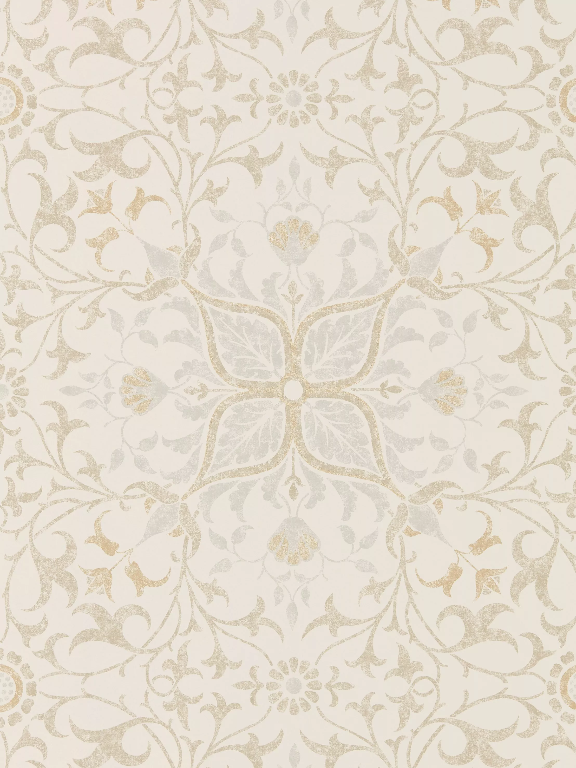 The original wallpaper, dating back to 1895, is one of only five ceiling papers created by Morris & Co. It is a textural wallcovering which depicts cornice work. Machine printed for the first time, it is available in four colourways, some coloured in dramatic hues, mixing charcoal and metallic inks.