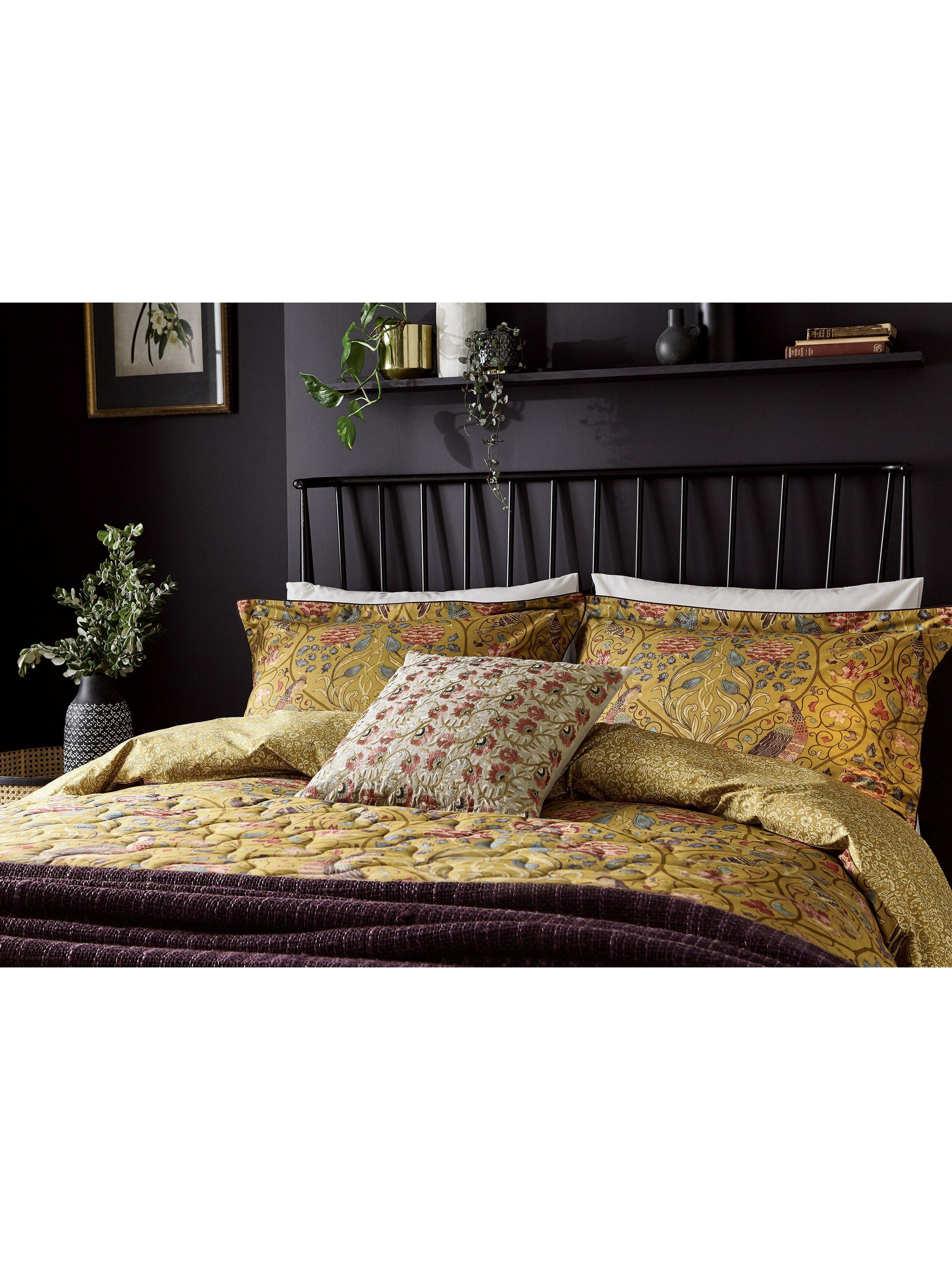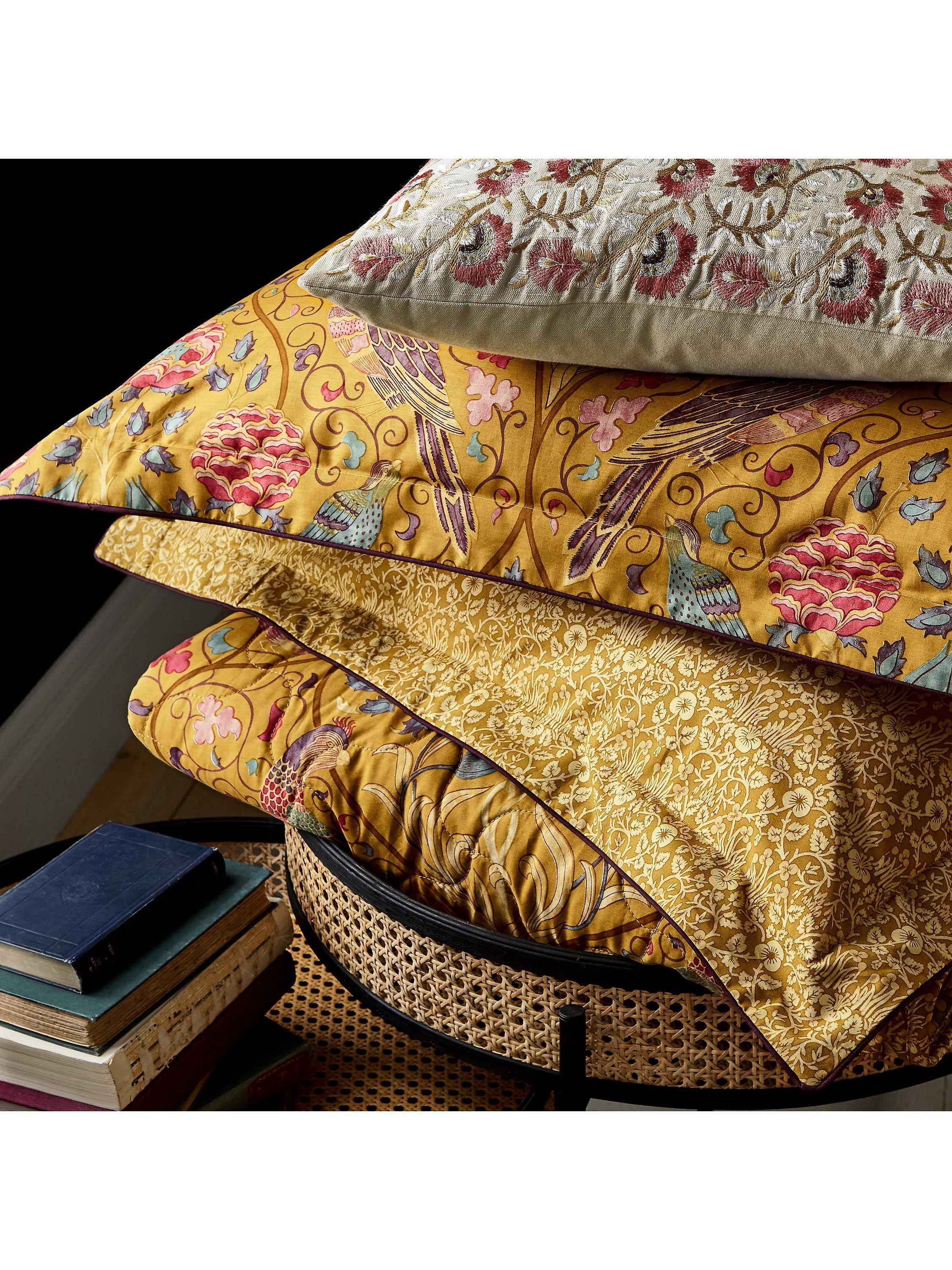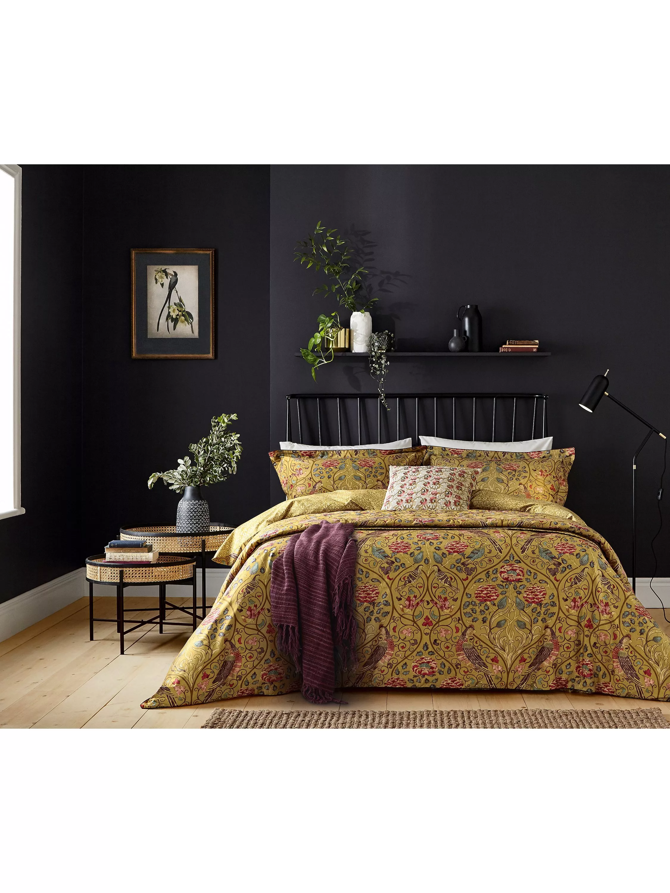 With its motif featuring a mirrored trellis of parakeets, stylised roses, tulips, leaves and turning stems, this bedding is printed on 100% organic cotton percale with a 220 thread count.