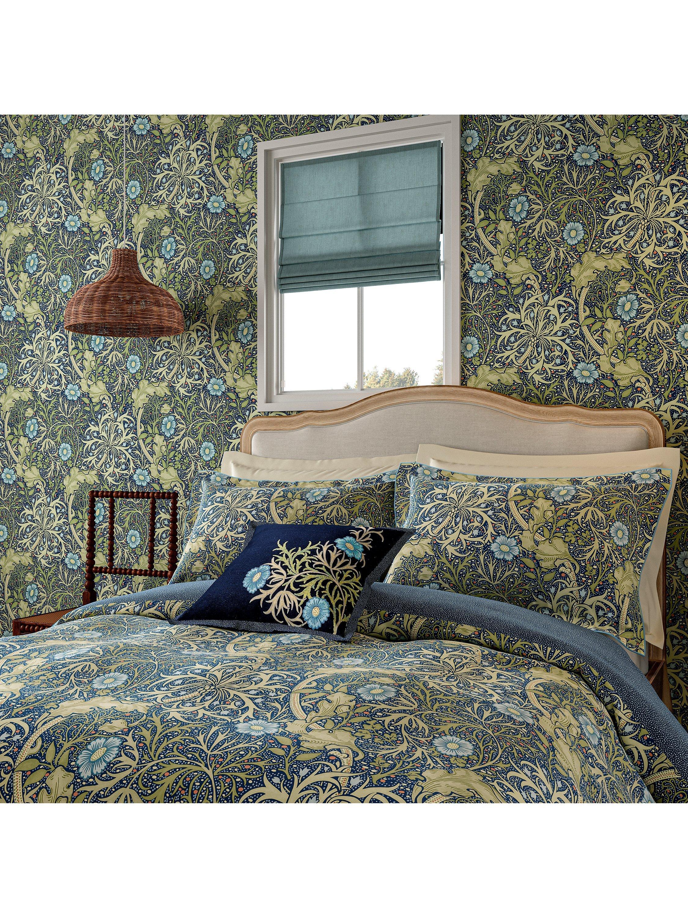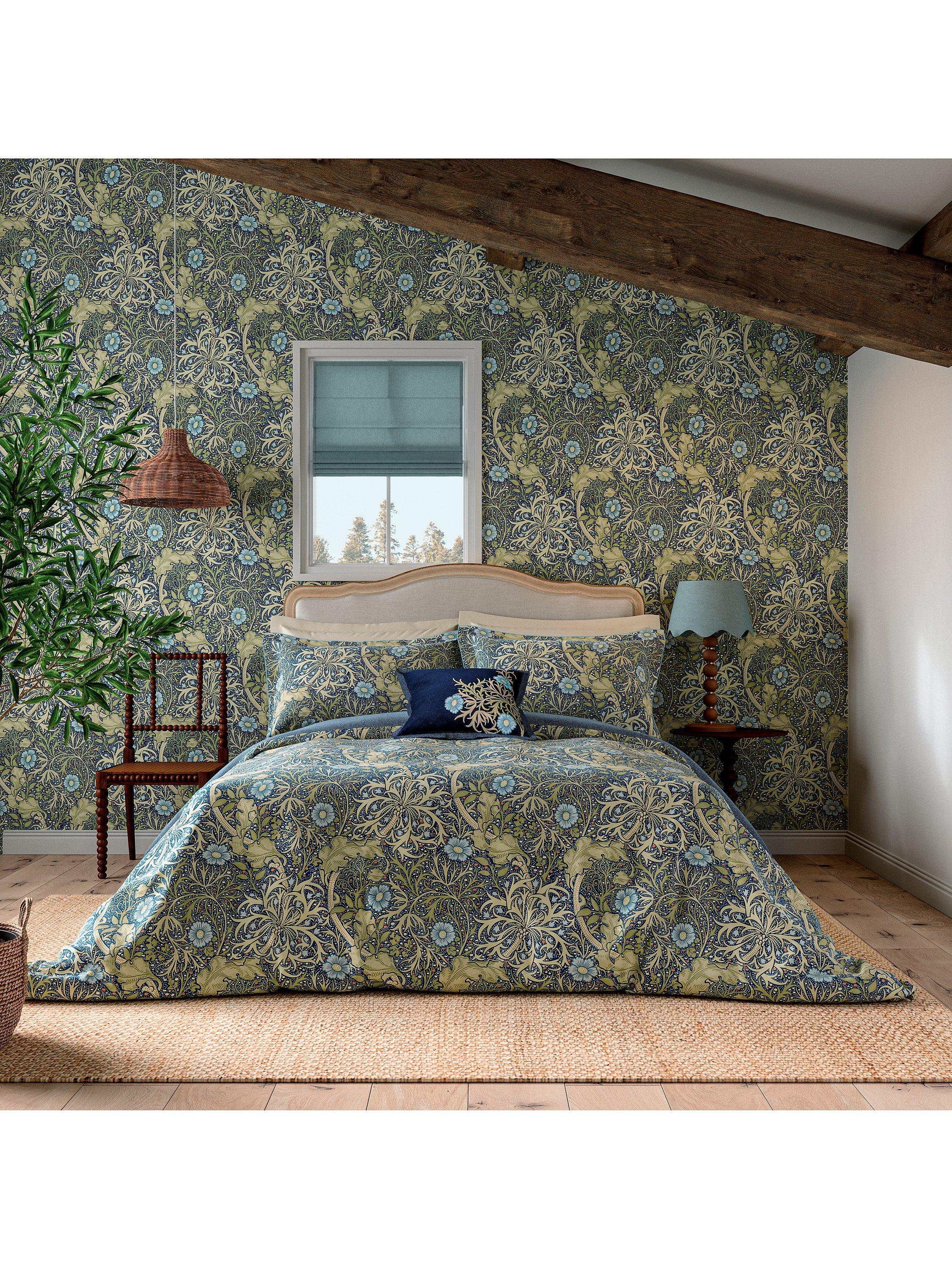 This distinctive design features a sinuous free-flowing pattern, capturing the gentle underwater movement of plants. Originally designed by J.H.Dearle in 1901, trained by the artist and craftsman William Morris, the intricate pattern is printed on smooth 220-thread count cotton percale.