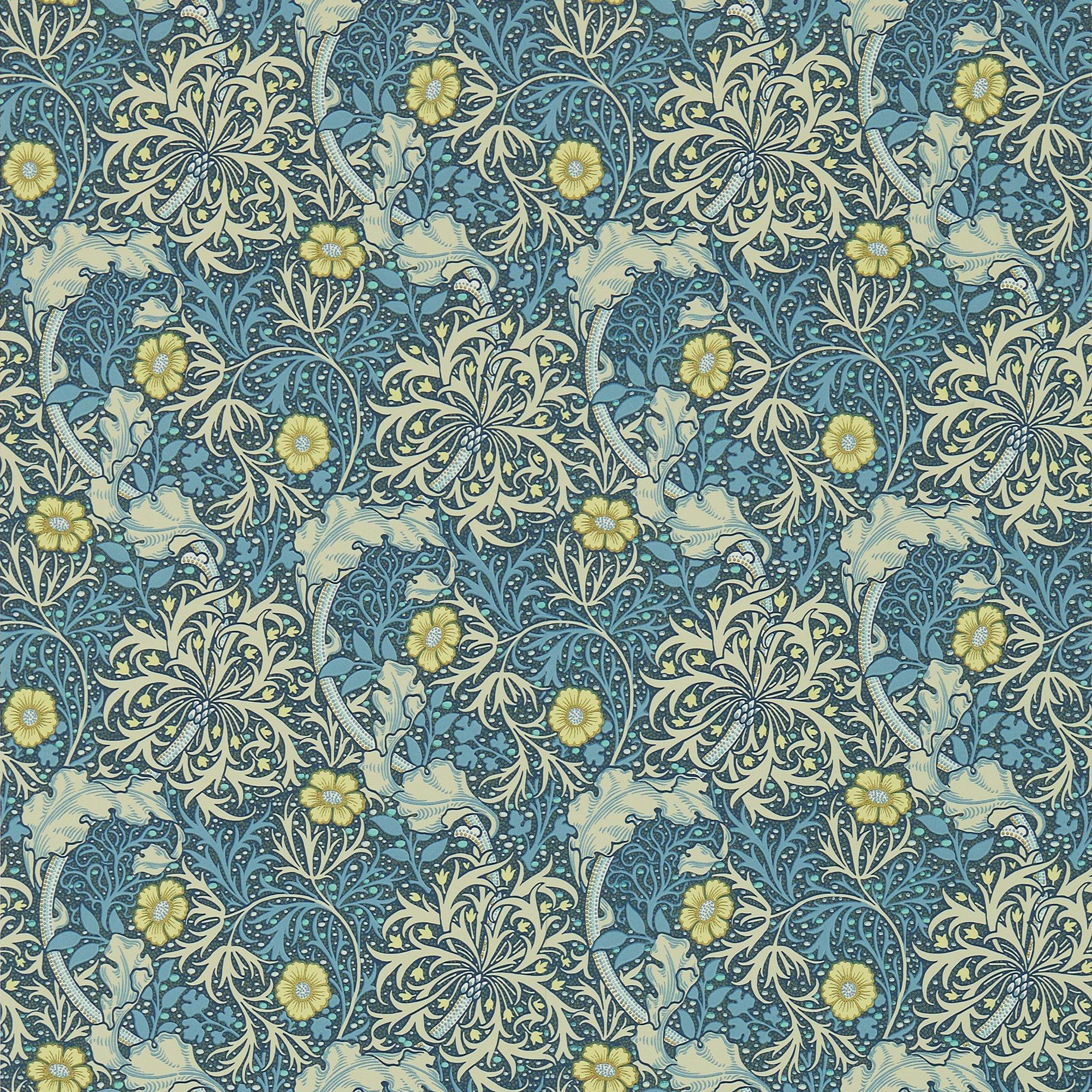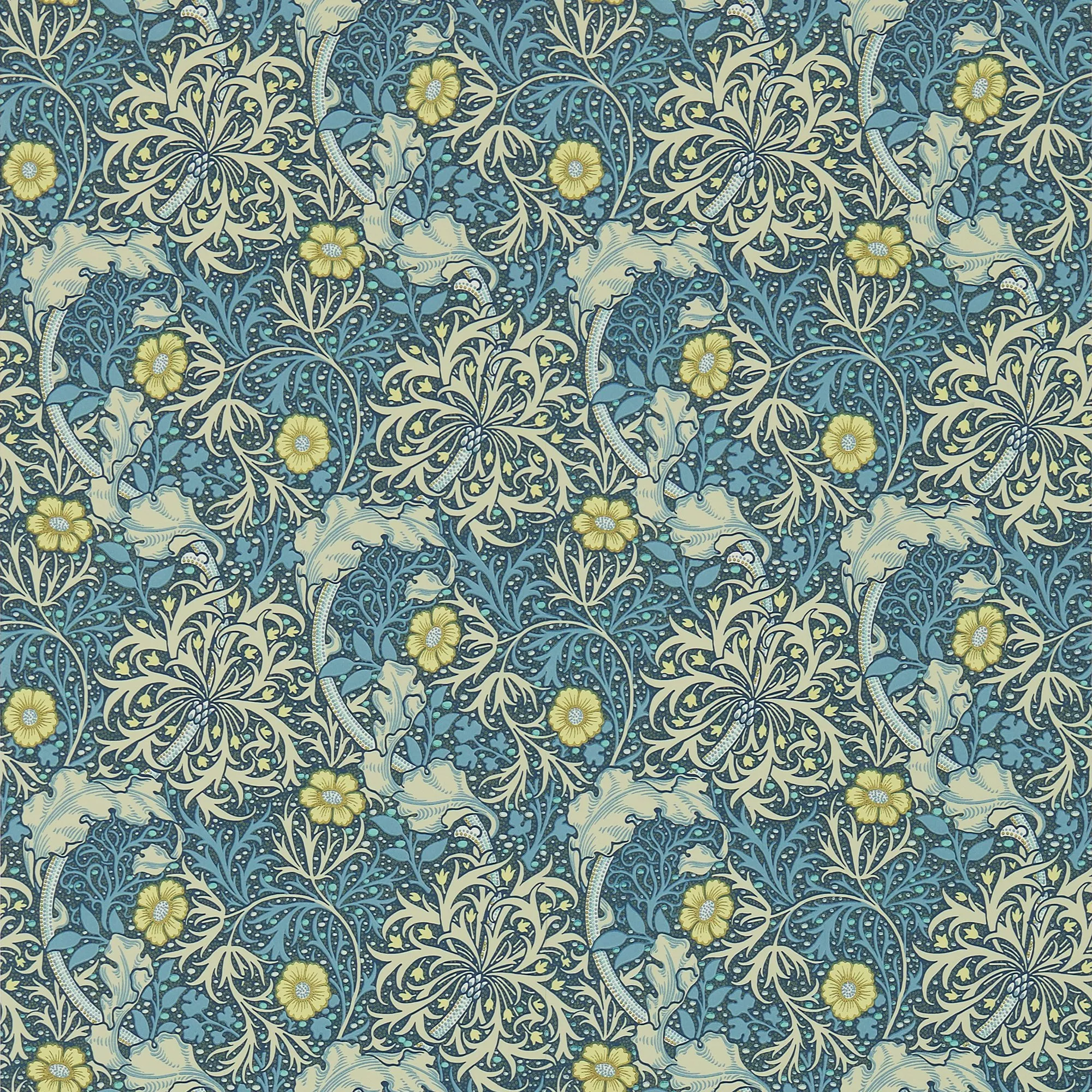 Authentic reproduction from a document in the Morris Archive by J.H. Dearle in 1901. The paper features a free flowing pattern capturing the underwater movement of plants.