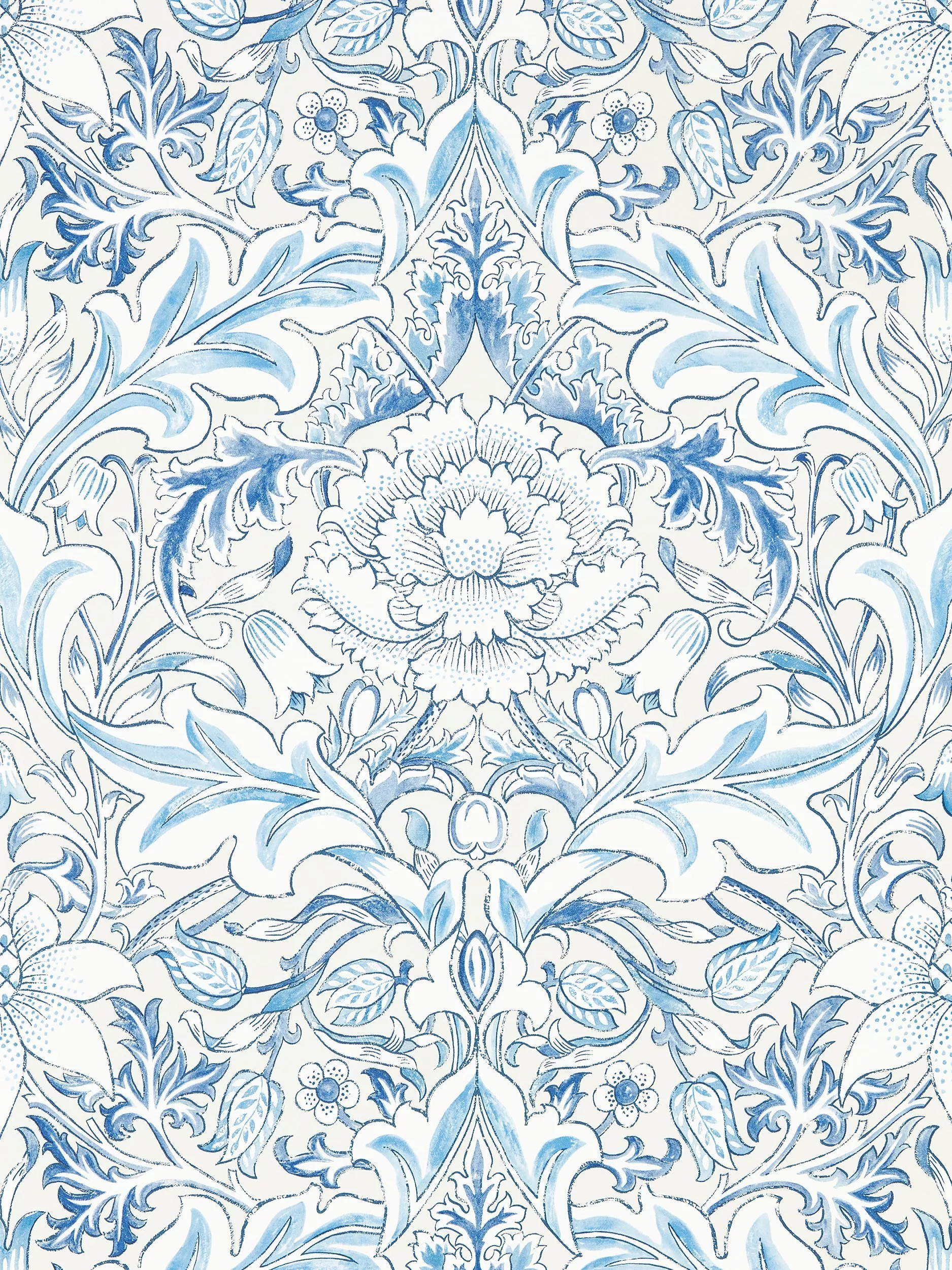 Slightly larger in scale than its fabric counterpart, "Severne" was originally printed at Morris's Merton Abbey workshop in South London. An elegant damask of acanthus leaves framing a central flowerhead.