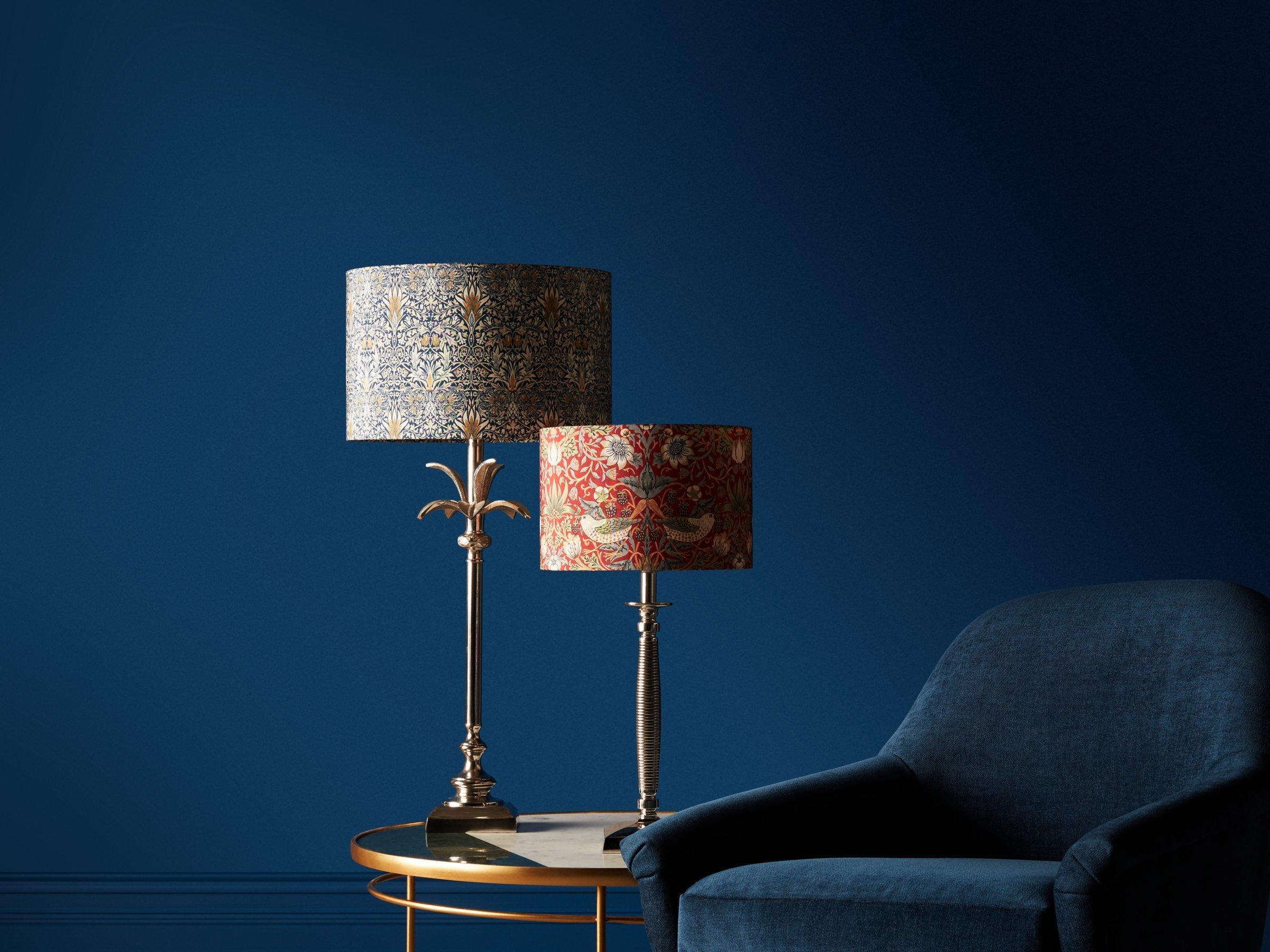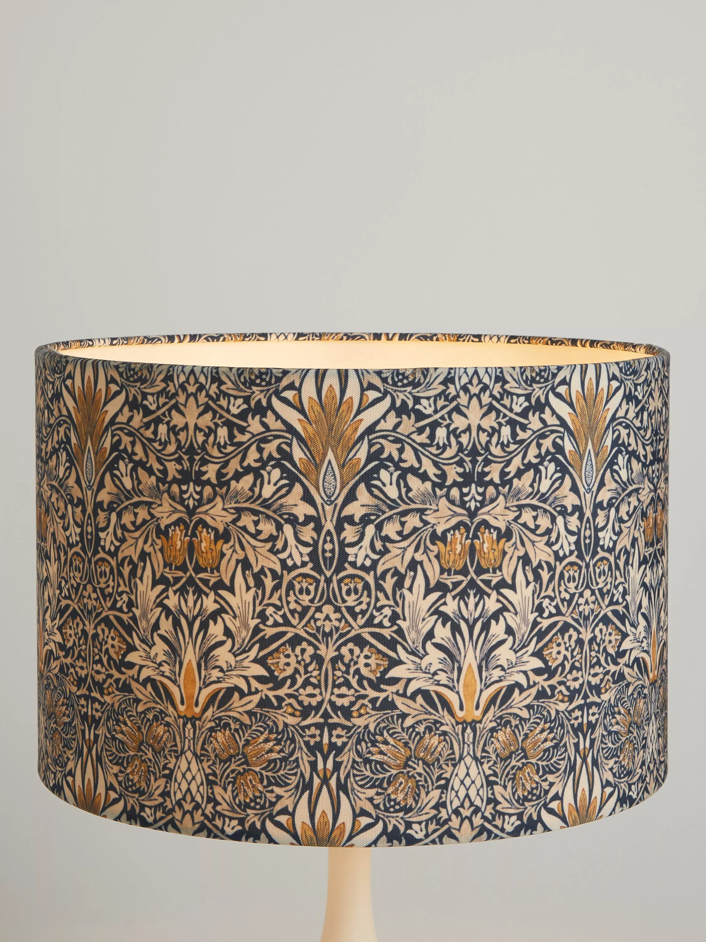 Originally designed by William Morris in 1876, the Snakeshead print combines both foliage and flame-like motifs in an Indian-inspired pattern. This traditional, drum-shaped lampshade will enhance your existing ceiling light or lamp base, thanks to its vibrant and eye-catching pattern.