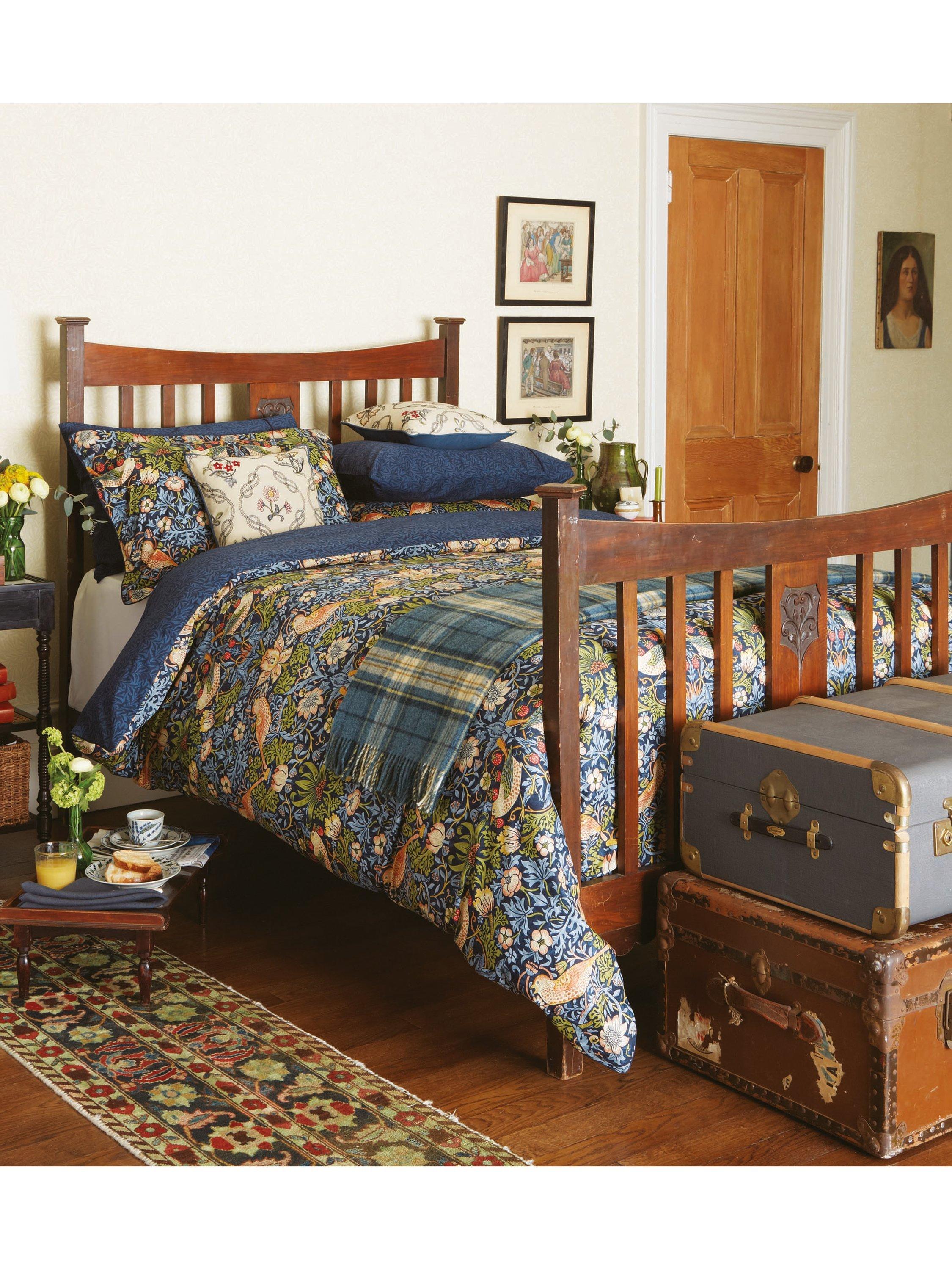 Harnessing the spirit of William Morris, this addition to the Morris & Co. bedding range features the iconic Strawberry Thief design, remaining true to Morris’s values of craftmanship, creating rooms with honesty and simplicity. Strawberry Thief is one of William Morris’s most popular designs, inspired by thrushes stealing strawberries from the kitchen garden of his countryside home.