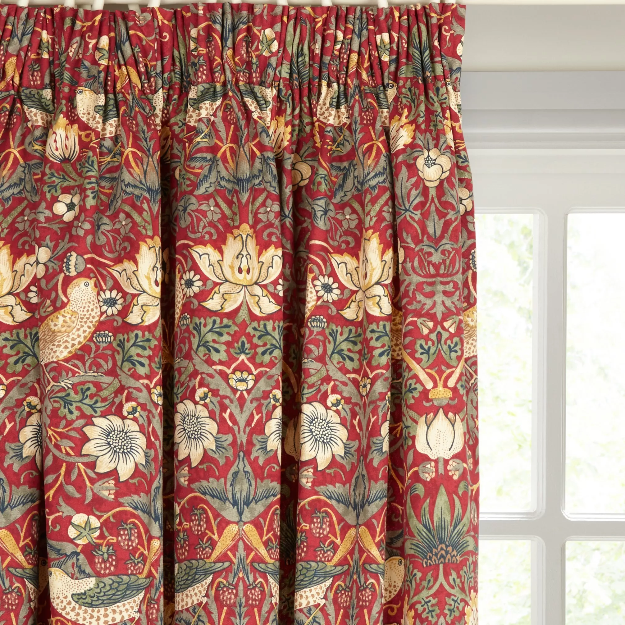 This pretty curtain features William Morris's classic "Strawberry Thief" print. The lining lends the curtains a full look, improving drape and enhancing the vibrancy of the pattern.