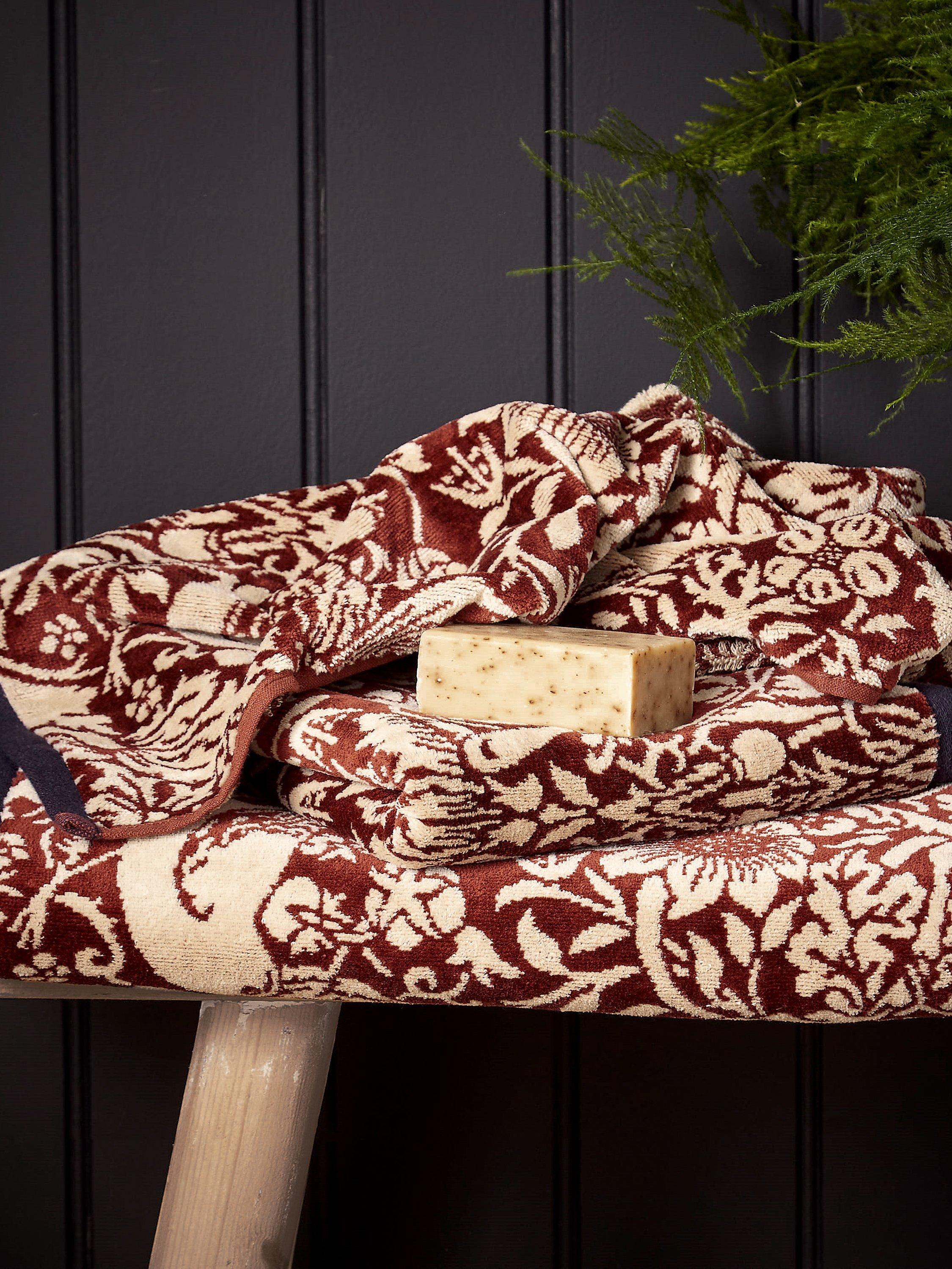 Capturing the moment William Morris caught a thrush pinching strawberries from his kitchen garden, Strawberry Thief from 1883 joyously represents its creator's fascination for nature. This iconic design is featured across these sumptuous jacquard woven cotton towels.