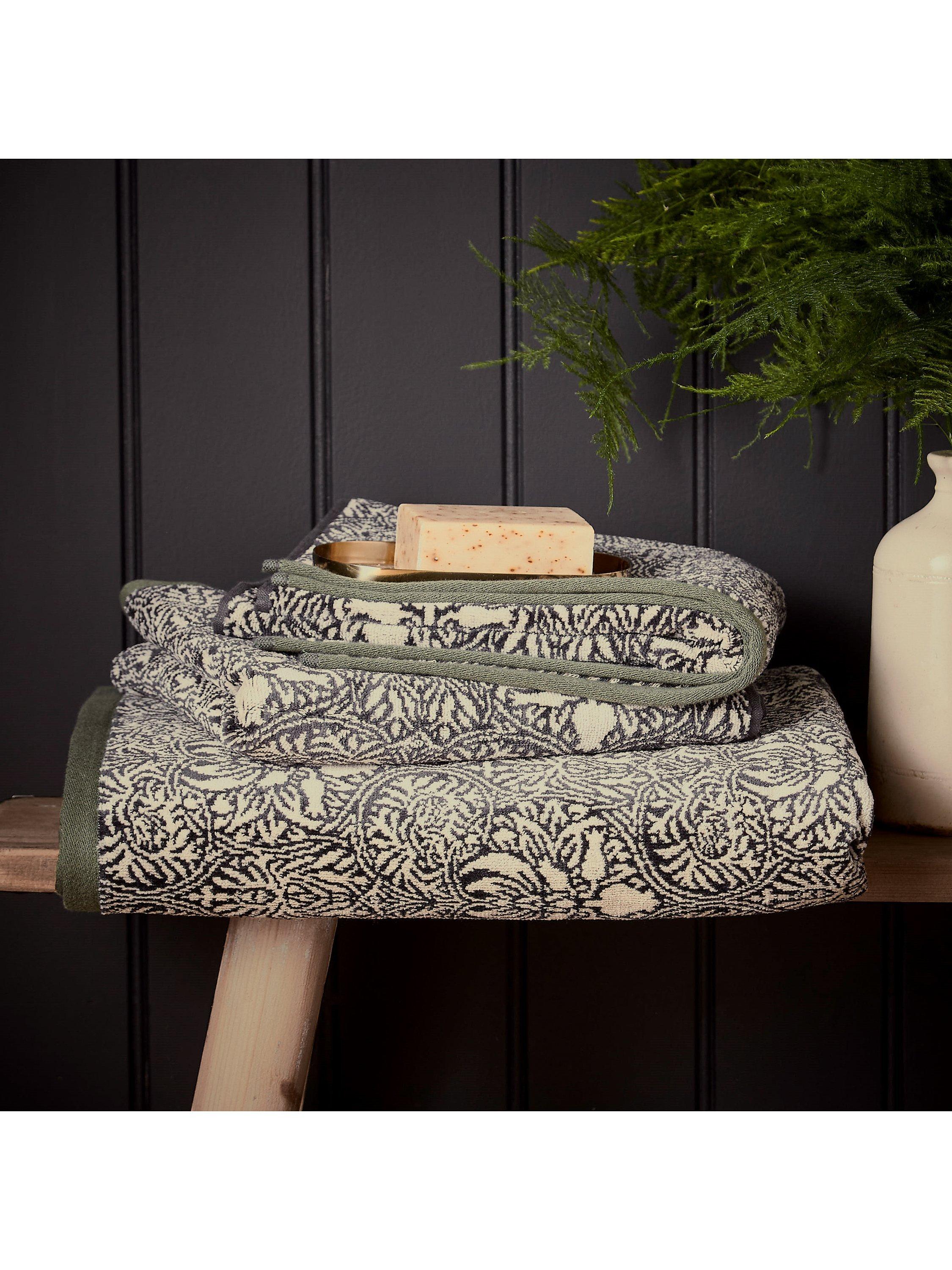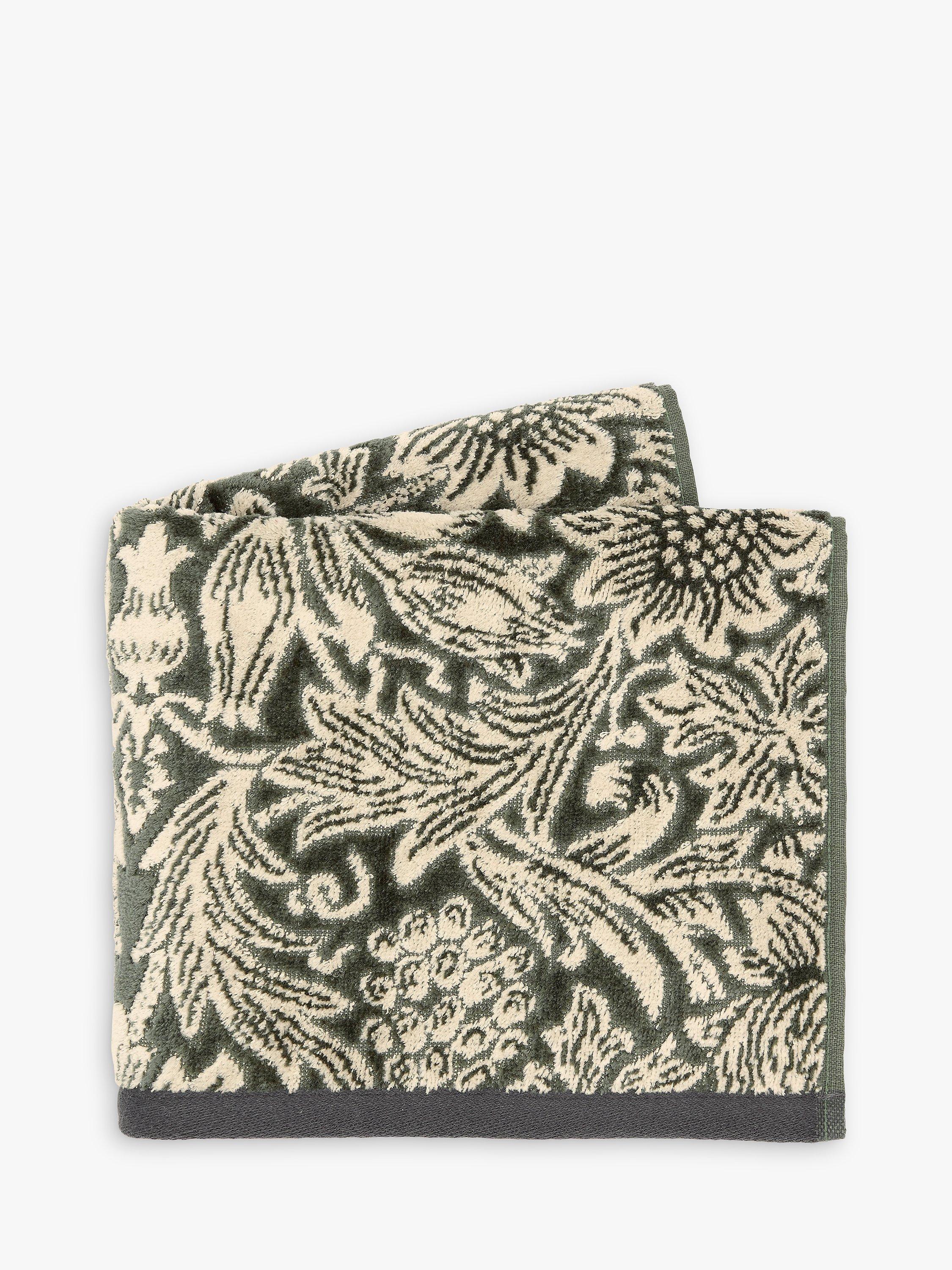 The radiant Sunflower design was created by William Morris in 1879 and features striking sunflower forms and tempting, dangling grapes. This gorgeously complex pattern appears on these sumptuous jacquard woven cotton towels.