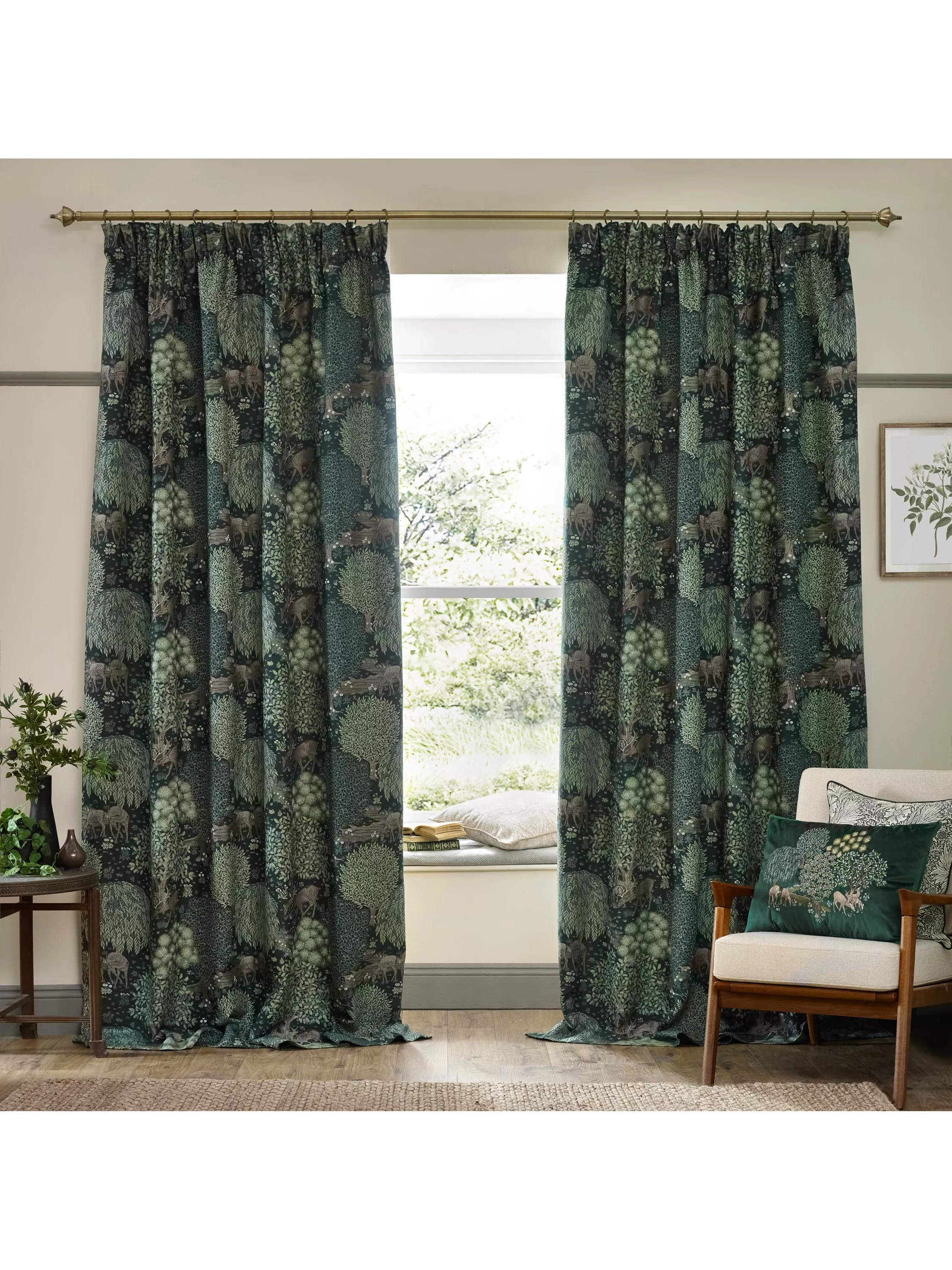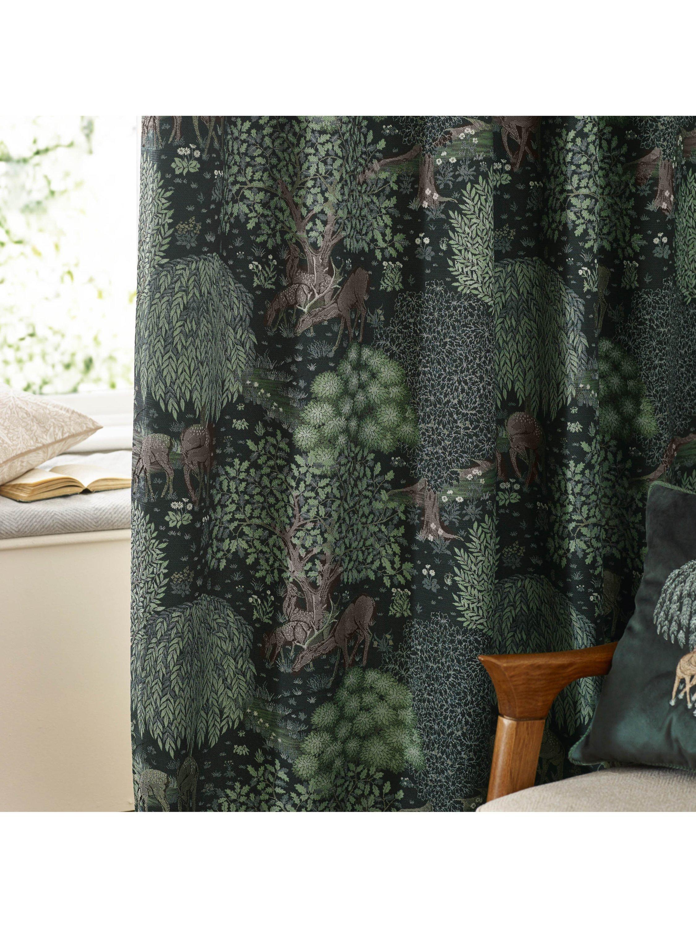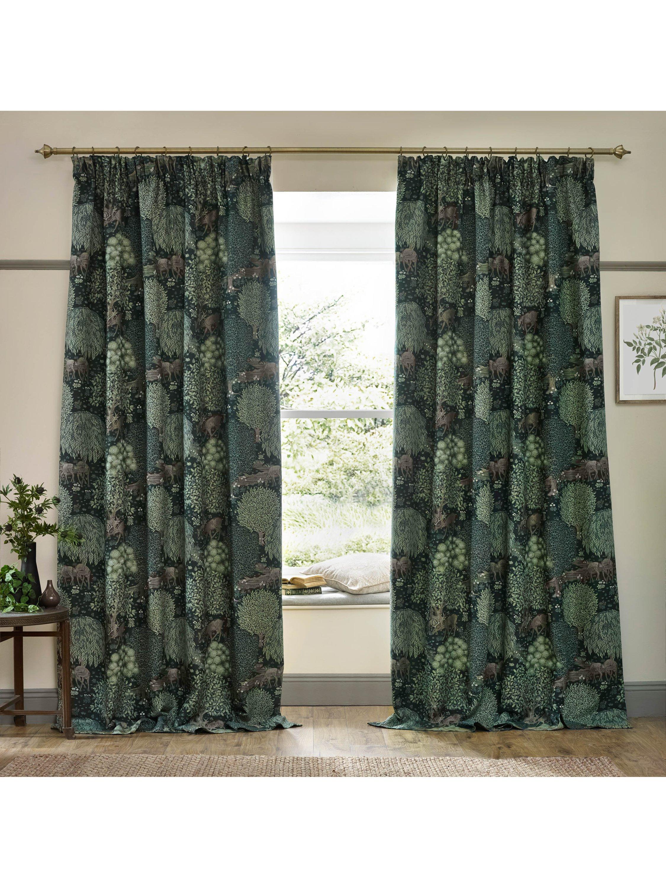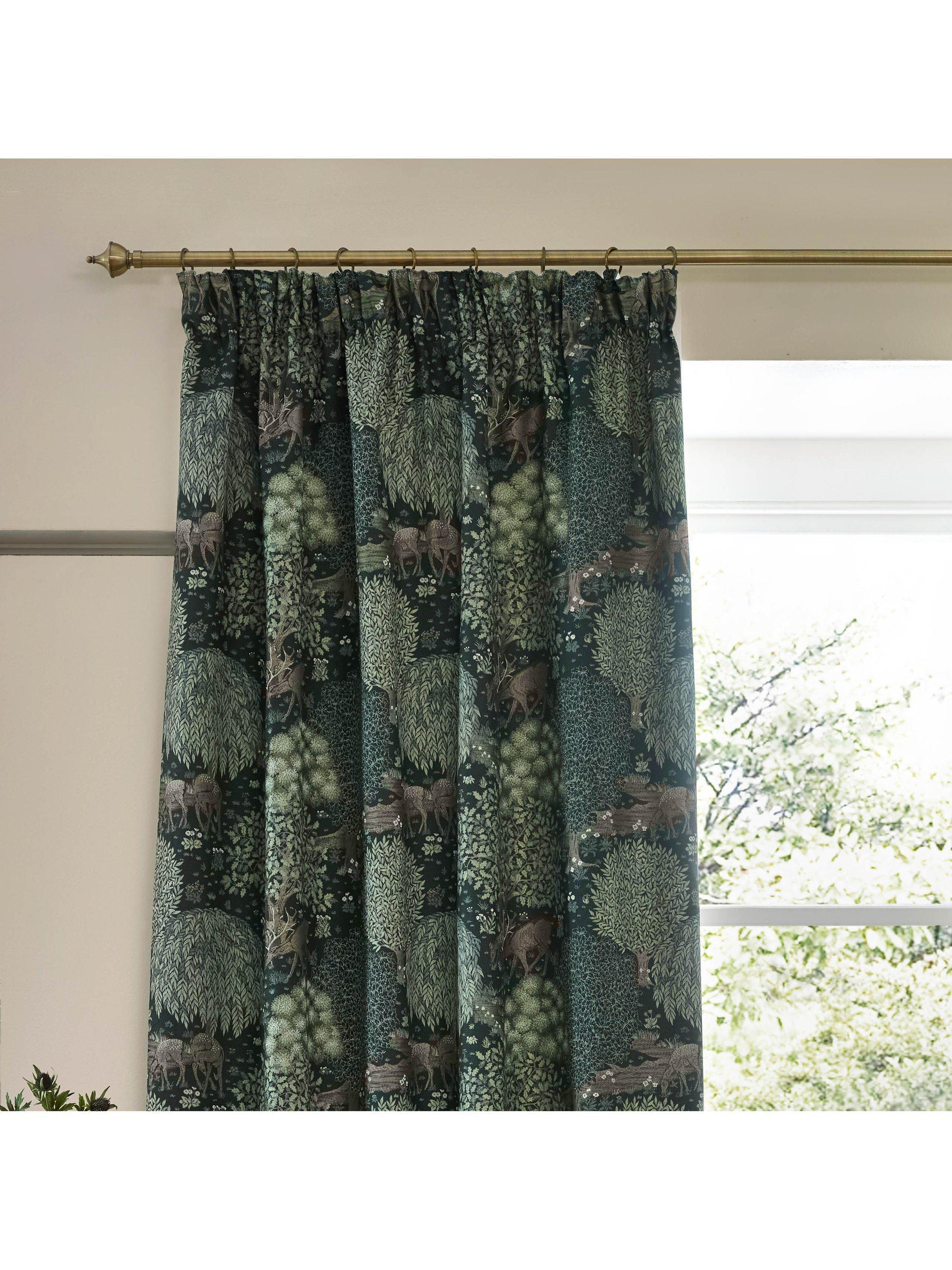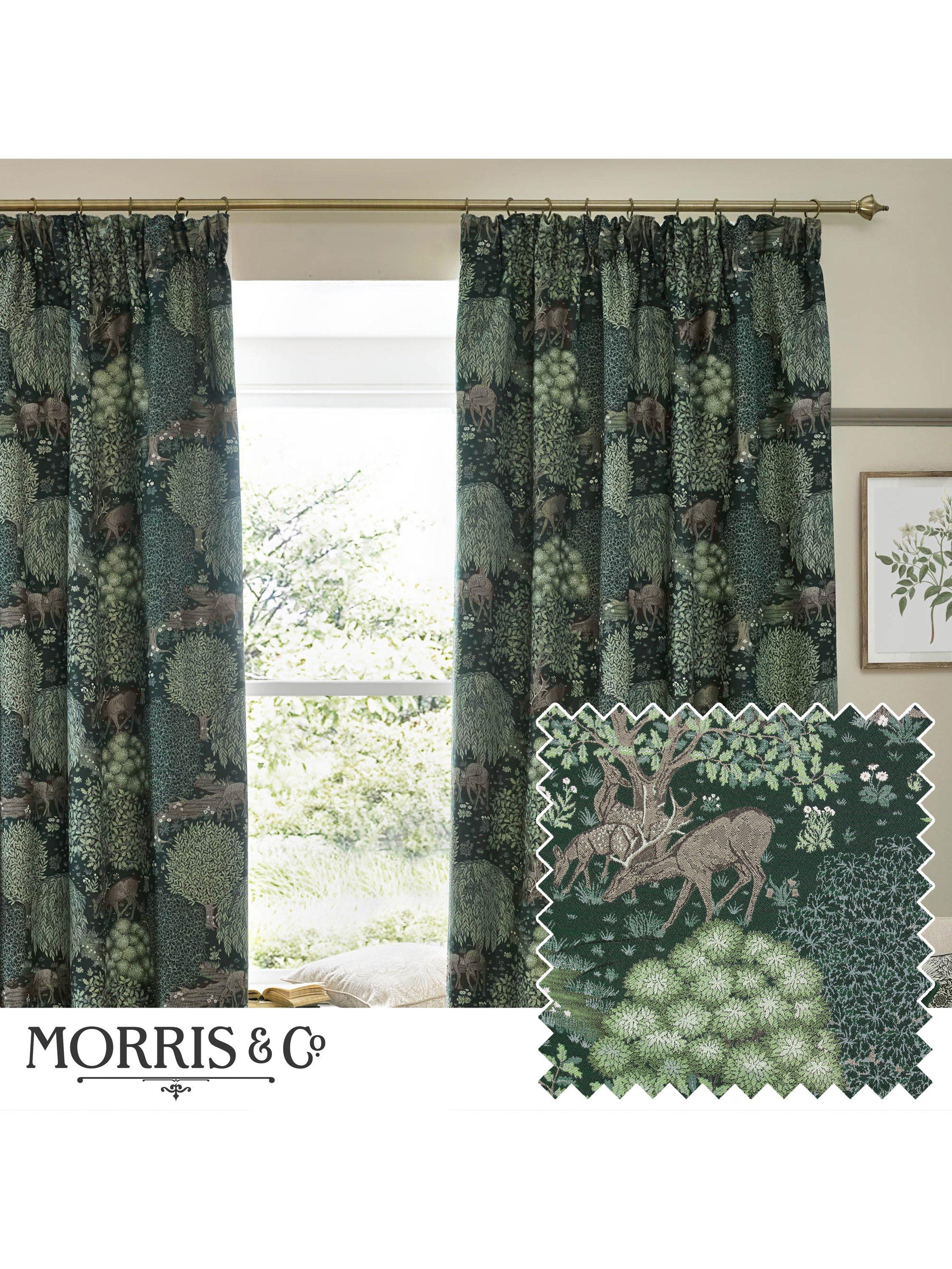 Morris & Co.The Brook Pair Lined Pencil Pleat Curtains, Forest Green