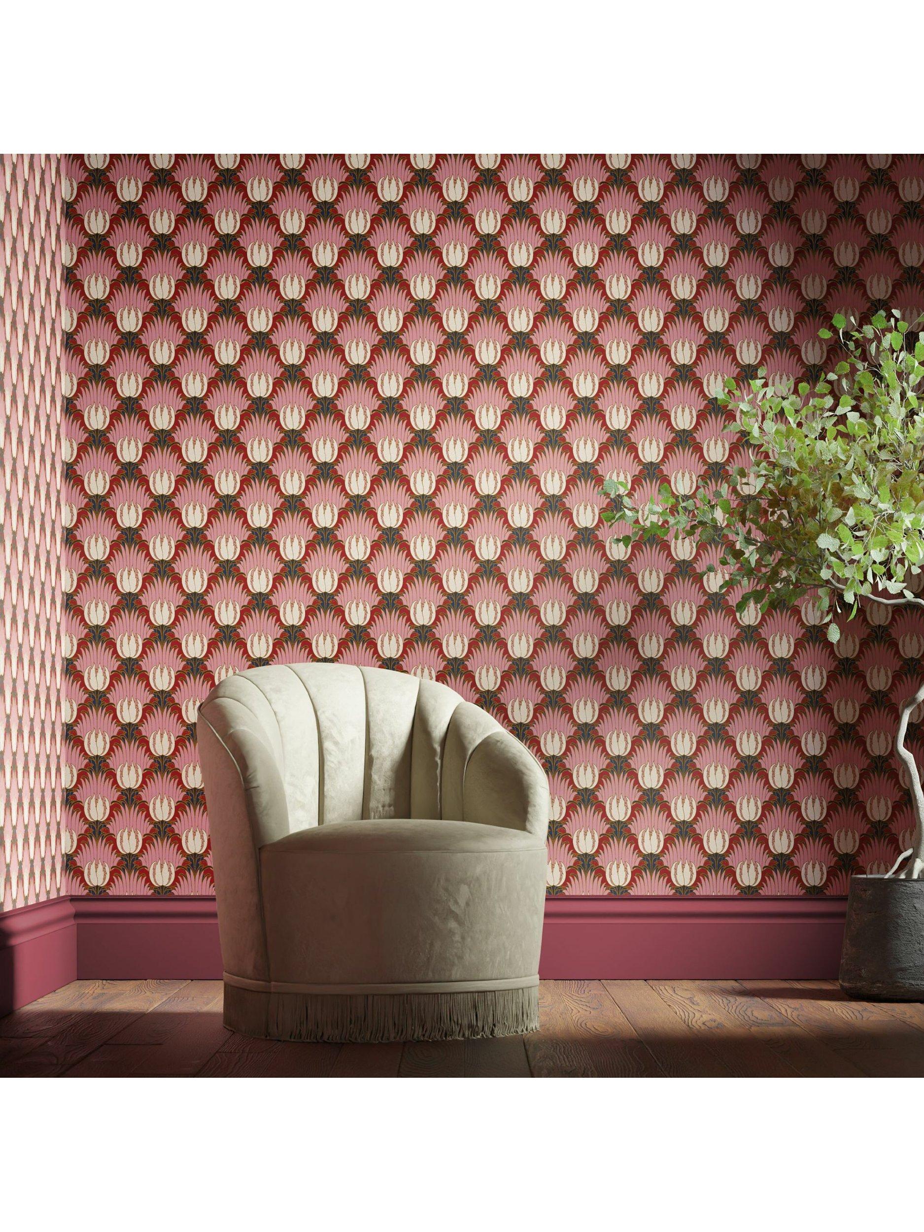 Be honest, did you spot the birds at first glance, hidden among the foliage? The Tulip & Bird pattern, whose form bears all the fresh simplicity of a classic Voysey, here undertakes a total colour transformation. This intriguingly patterned wallpaper, made in the UK, now features deep, gem-like tones, reminiscent of the ceramic work of Arts & Crafts designer C.F.A. Voysey.