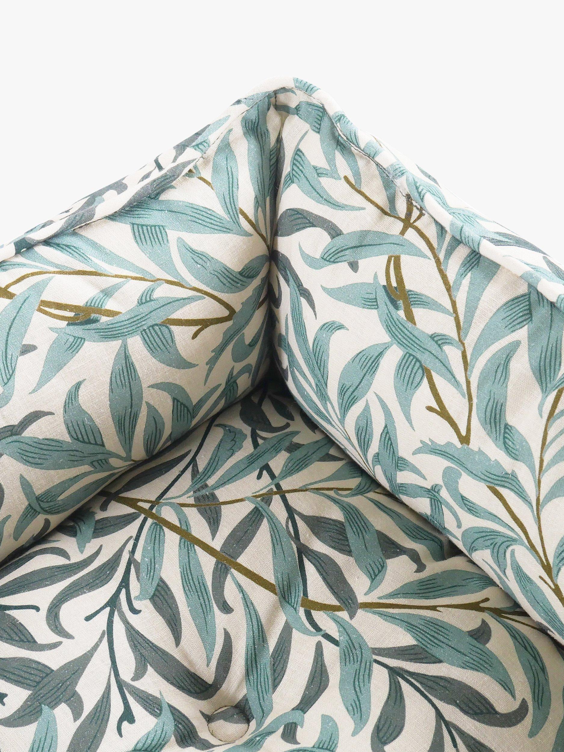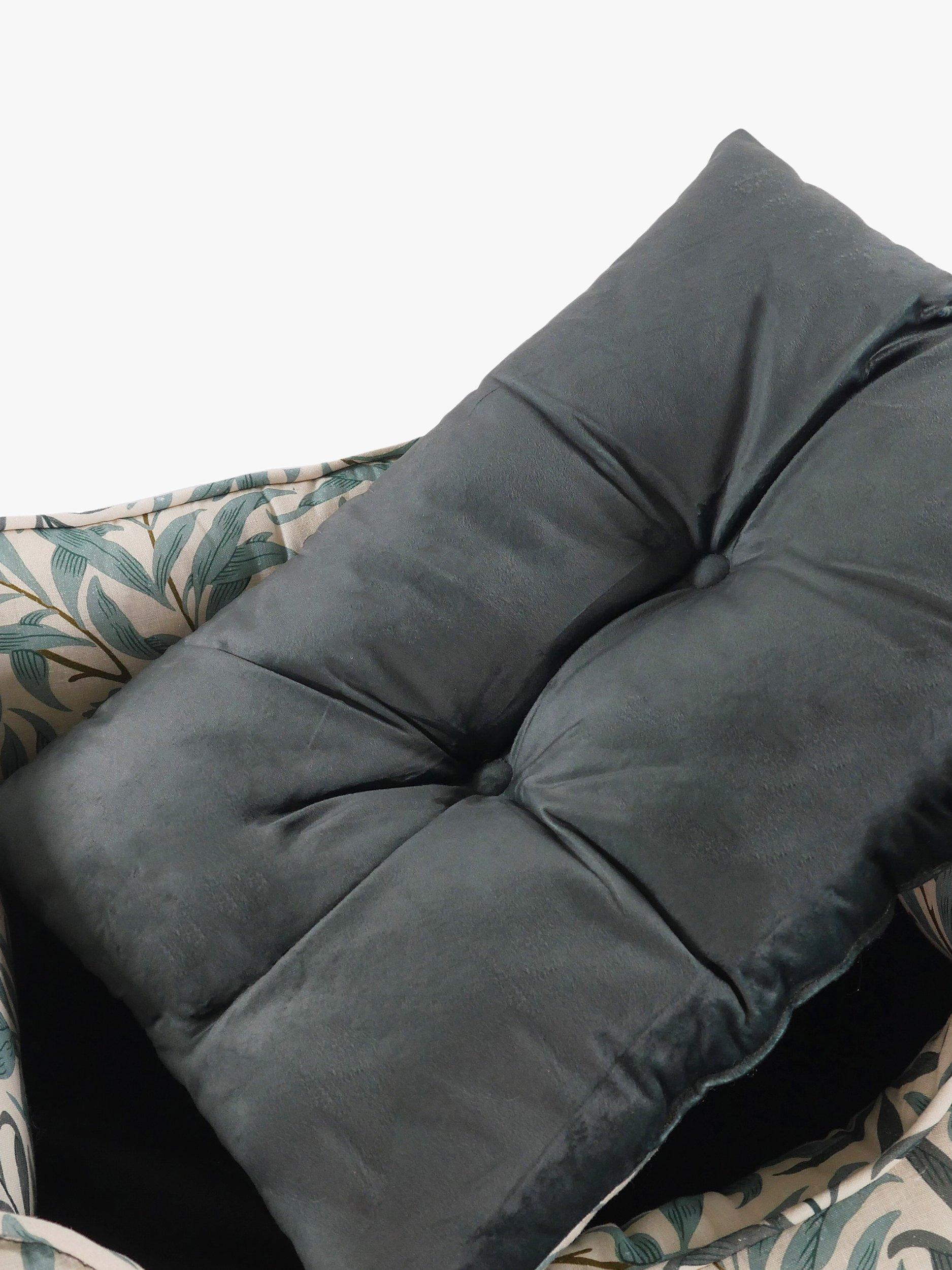 Willow Bough, originally designed by William Morris in 1887, is the perfect expression of its creator’s love of nature and the English countryside. The overall pattern conveys a real sense of harmony and tranquillity, bringing a touch of iconic design into your home any pooch will love and will look great in any part of the house. Willow Bough Print Square Bed is thickly padded on all sides to provide extra warmth and comfort, crafted from luxury, linen cotton blend with contrasting reversible velvet inner cushion.