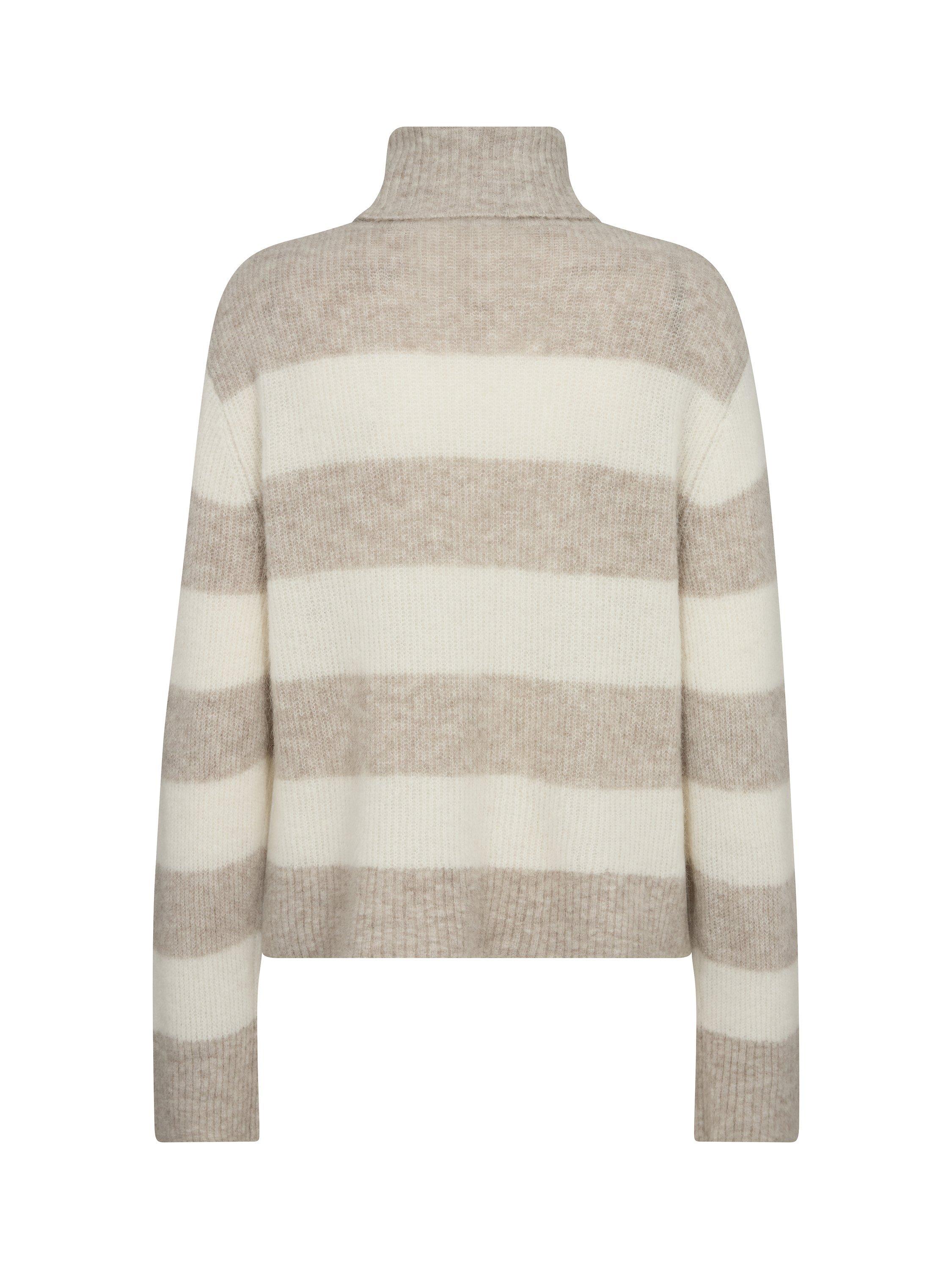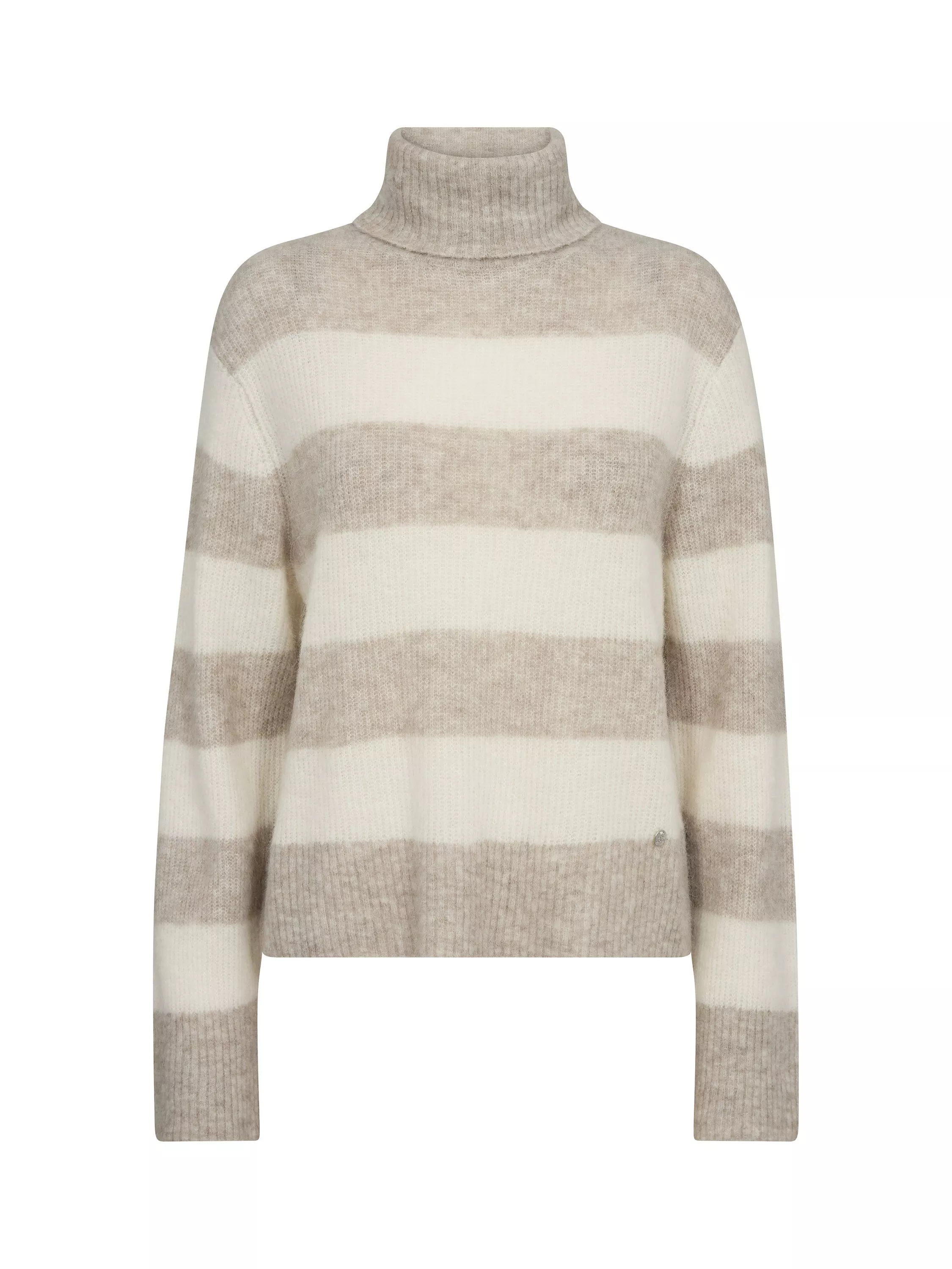 Trendy rollneck knit, crafted from a soft and lightweight alpaca and wool blend. It's designed in a trendy striped pattern and has a boxy silhouette. It looks great with a pair of jeans, tailored trousers, or layered over a dress.