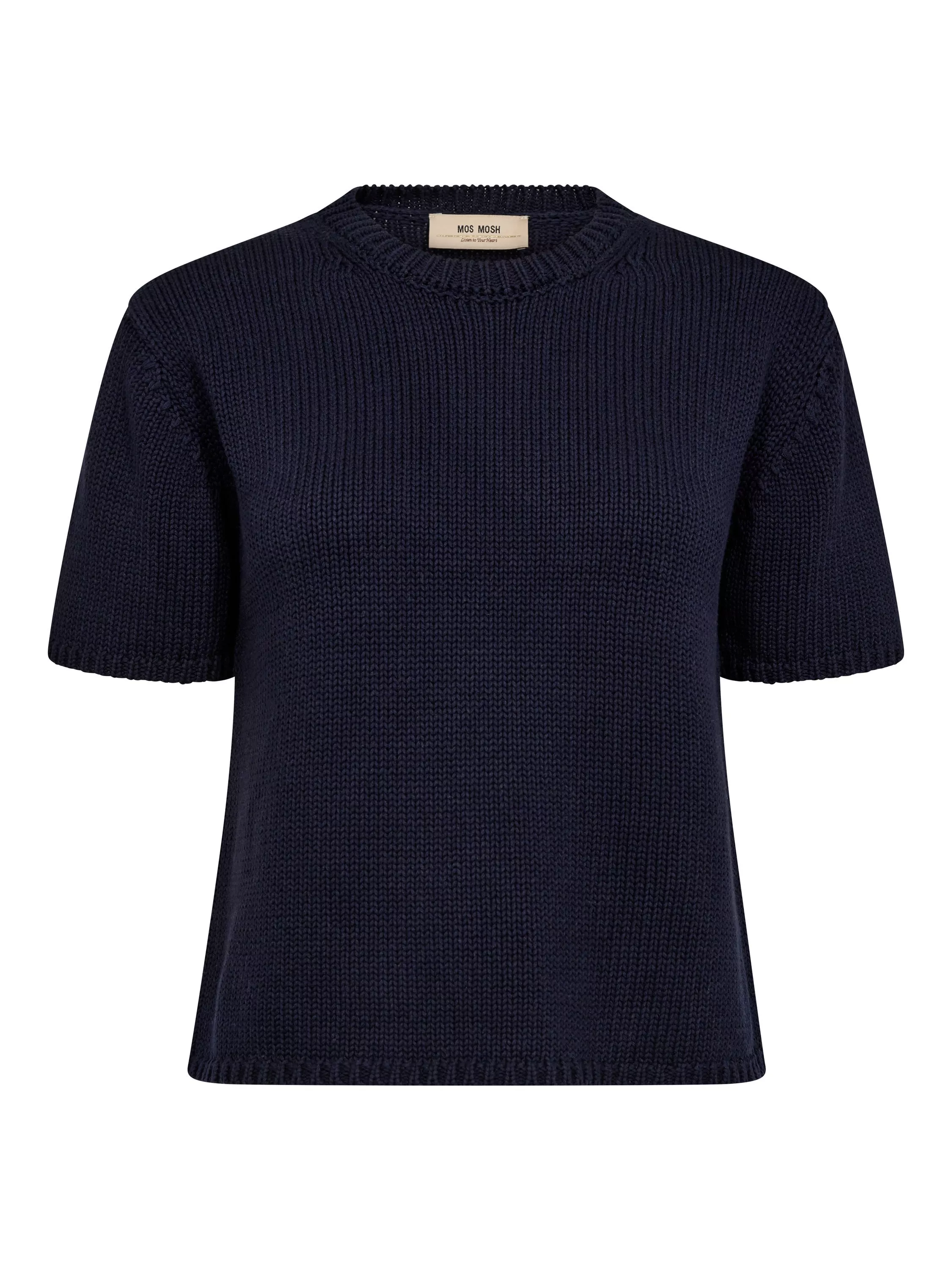 This knitted tee features a classic crew neck design, offering timeless simplicity and comfort. With its regular silhouette, it provides a versatile and flattering fit for everyday wear. Perfect for layering or wearing on its own, it’s a wardrobe essential.