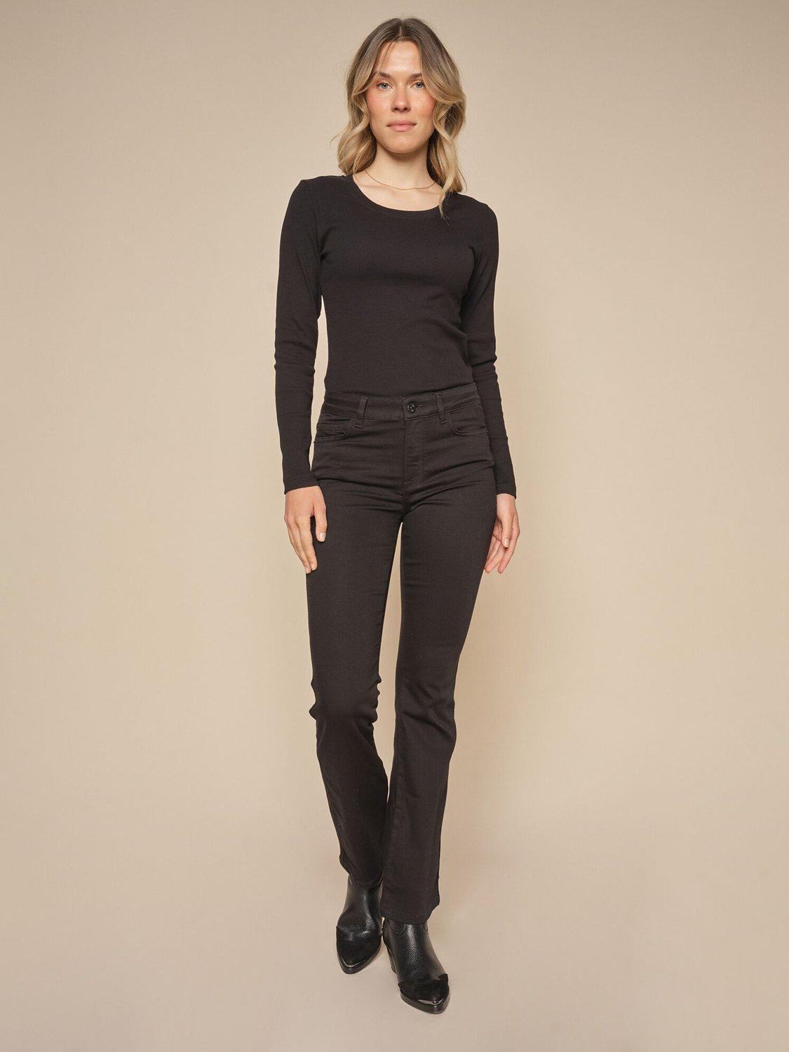 These flare-fit jeans with a high rise are crafted from a blend of viscose, cotton and lyocell, giving them a super-soft finish. They have a classic five-pocket design and contrast stitching that looks great against the denim. Pair with a statement tee and an oversized blazer.