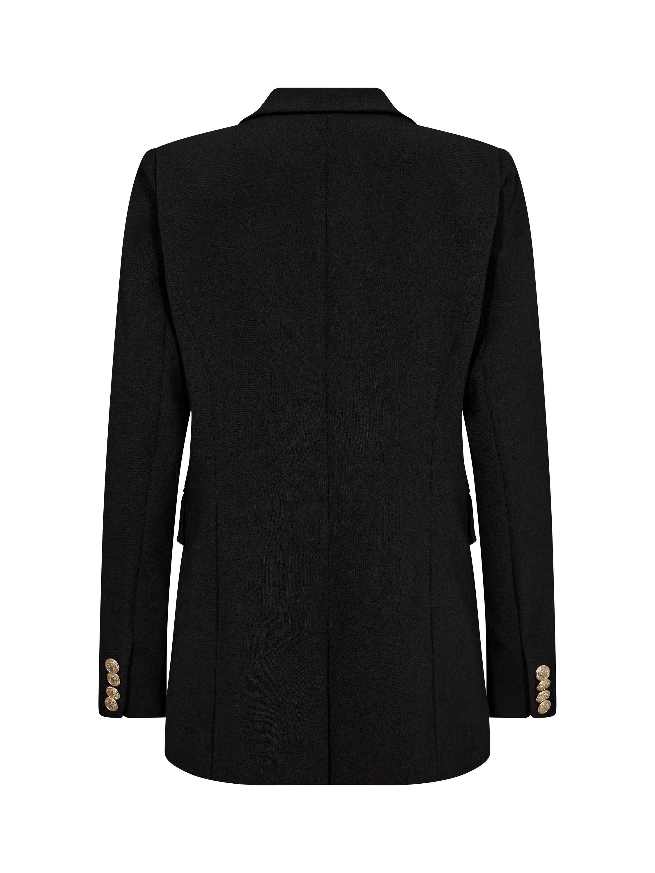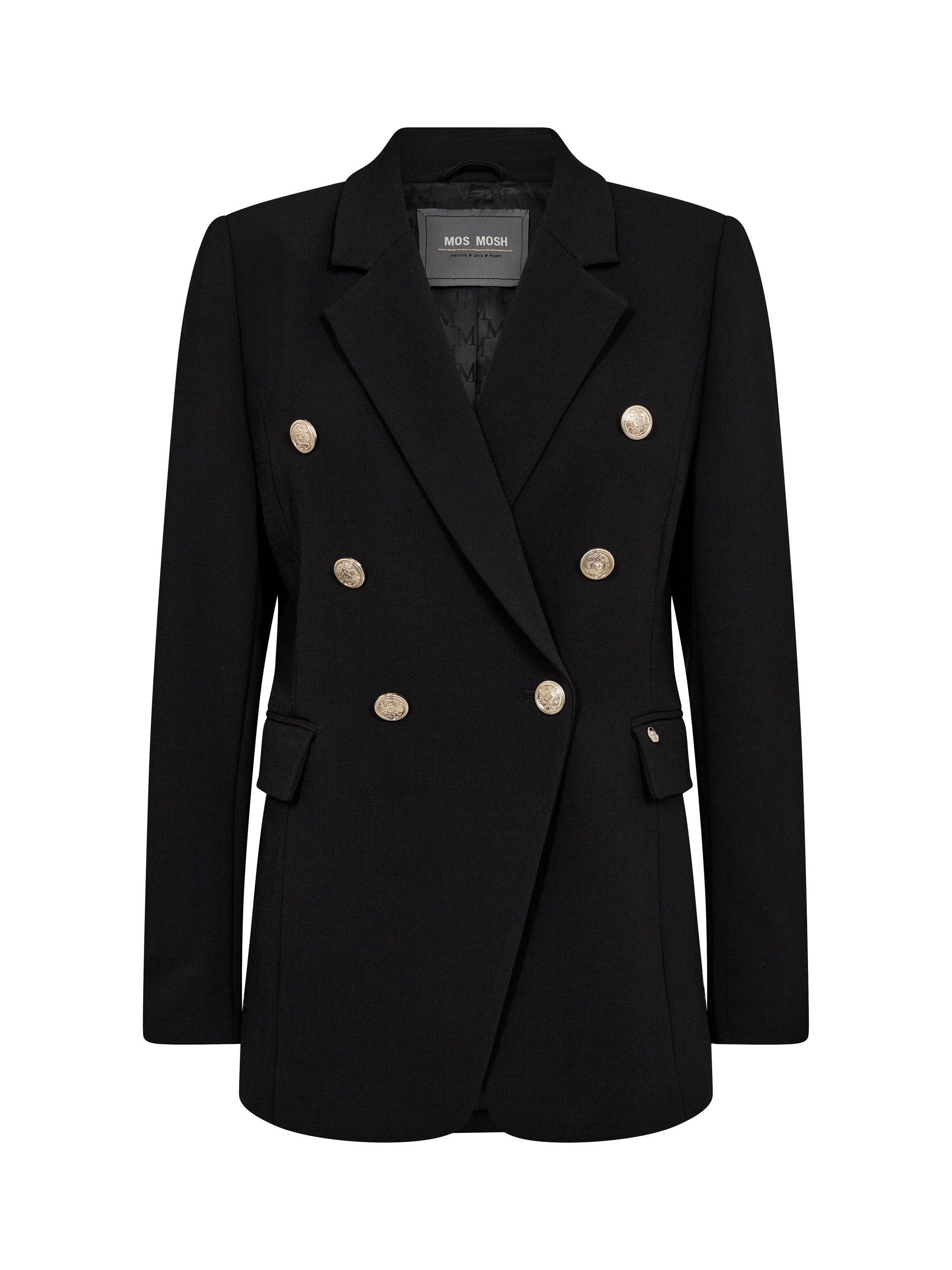 This blazer is a homage to classic MOS MOSH. Cut in a double-breasted fit with a longer and more oversize length and adorned with beautiful gold-embossed buttons. We added a hint of wool to the flexible soft quality to make it perfect for those tricky autumn days. Complete the look with tailored trousers or be cool and wear it with jeans.