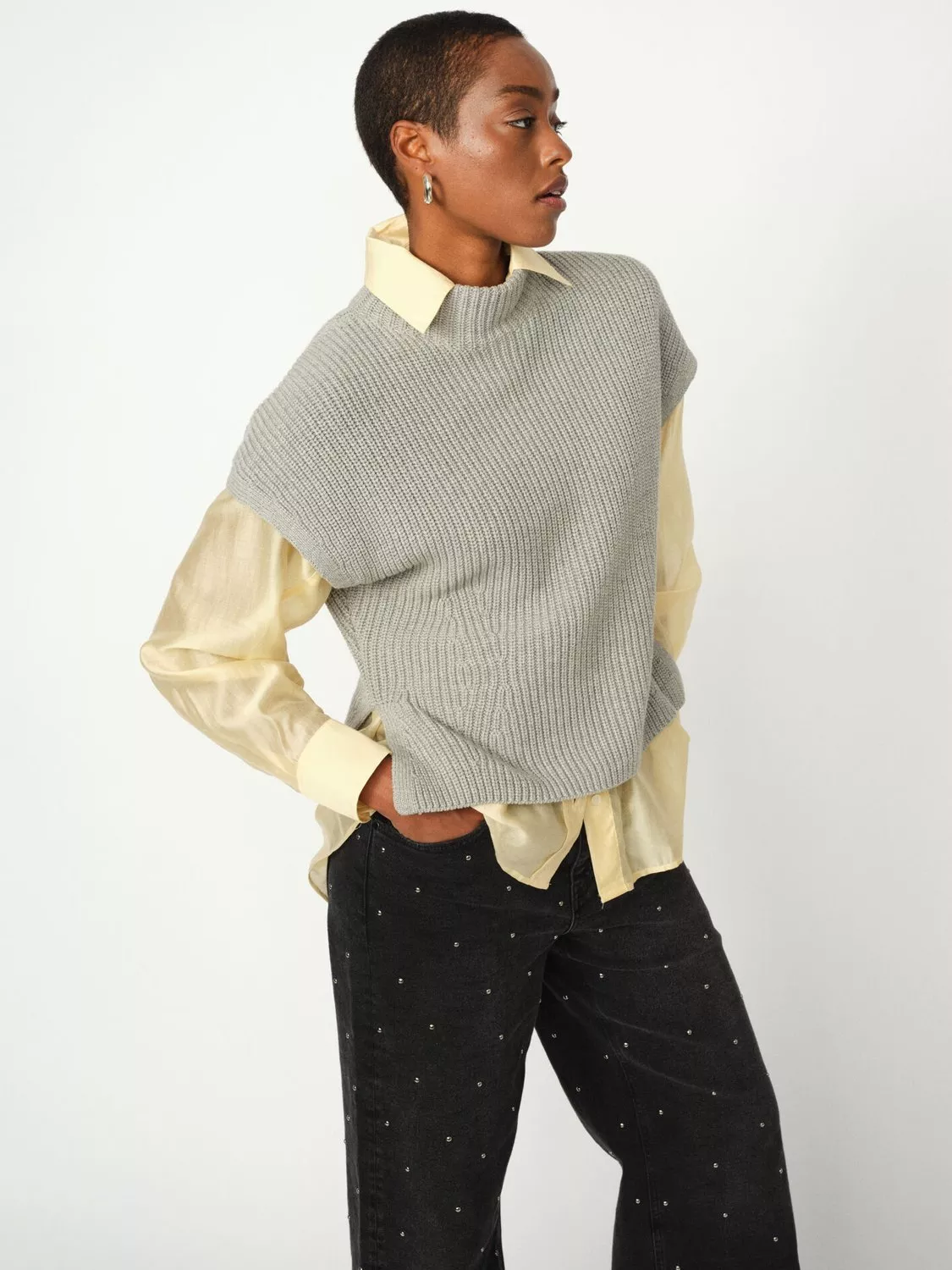 Crafted with organic cotton, this vest offers a chic and fitted silhouette perfect for layering, featuring a stylish high neck.<./p>