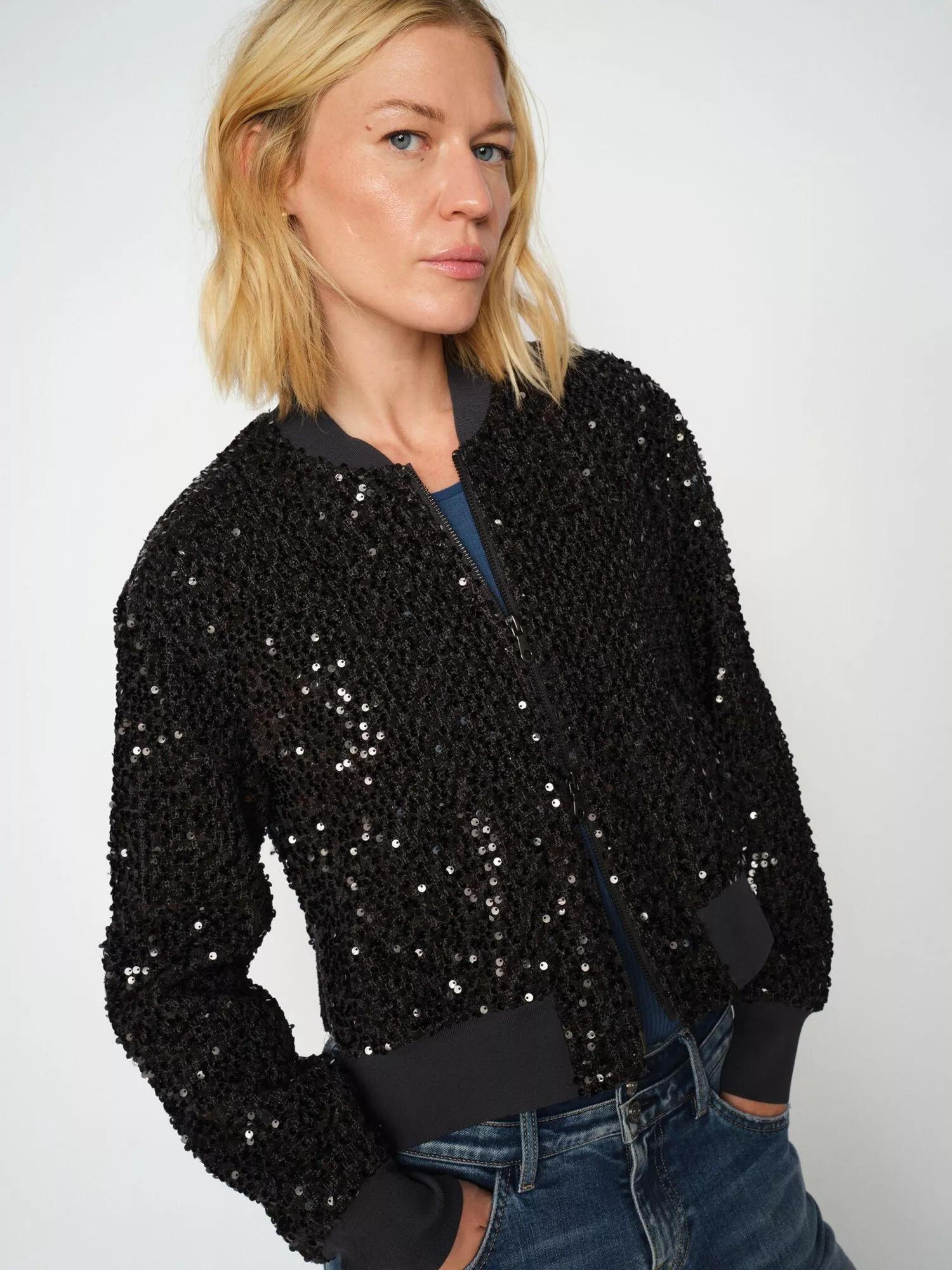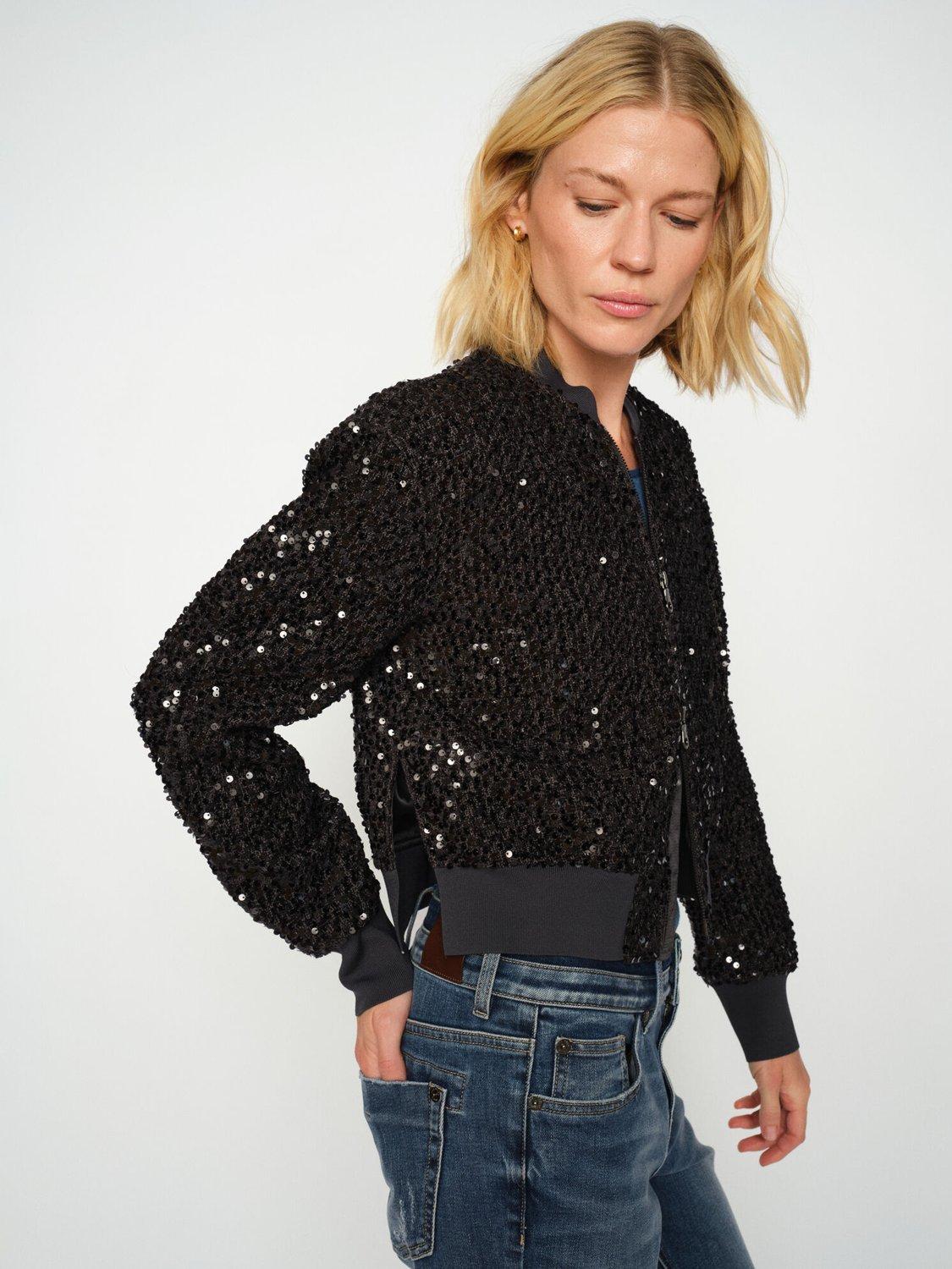 Stylish Mos Mosh bomber jacket perfect for urban adventures with sparkling design.