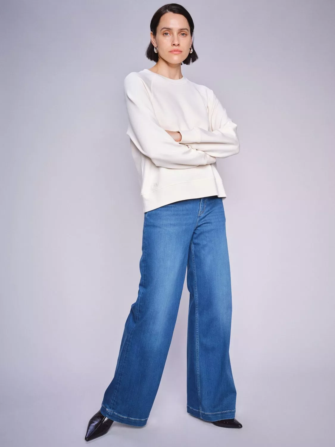 Flattering jeans in a wide-leg fit with high rise, crafted from a blend of fabrics, giving them a super-soft finish. They have a classic five-pocket design and contrast stitching that looks great against the denim. Tuck in a light roll neck and pair with a cool overshirt.