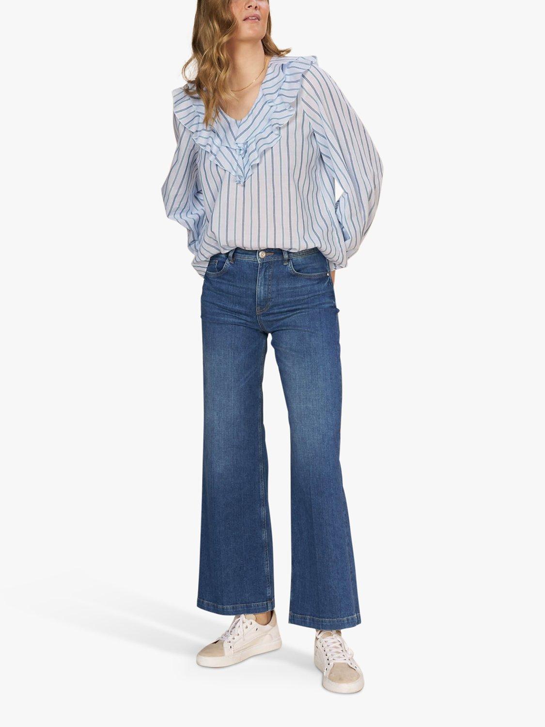 Descending into a flared silhouette, these mid rise jeans by MOS MOSH are crafted from a durable, breathable cotton blend and feature a regular length hem.