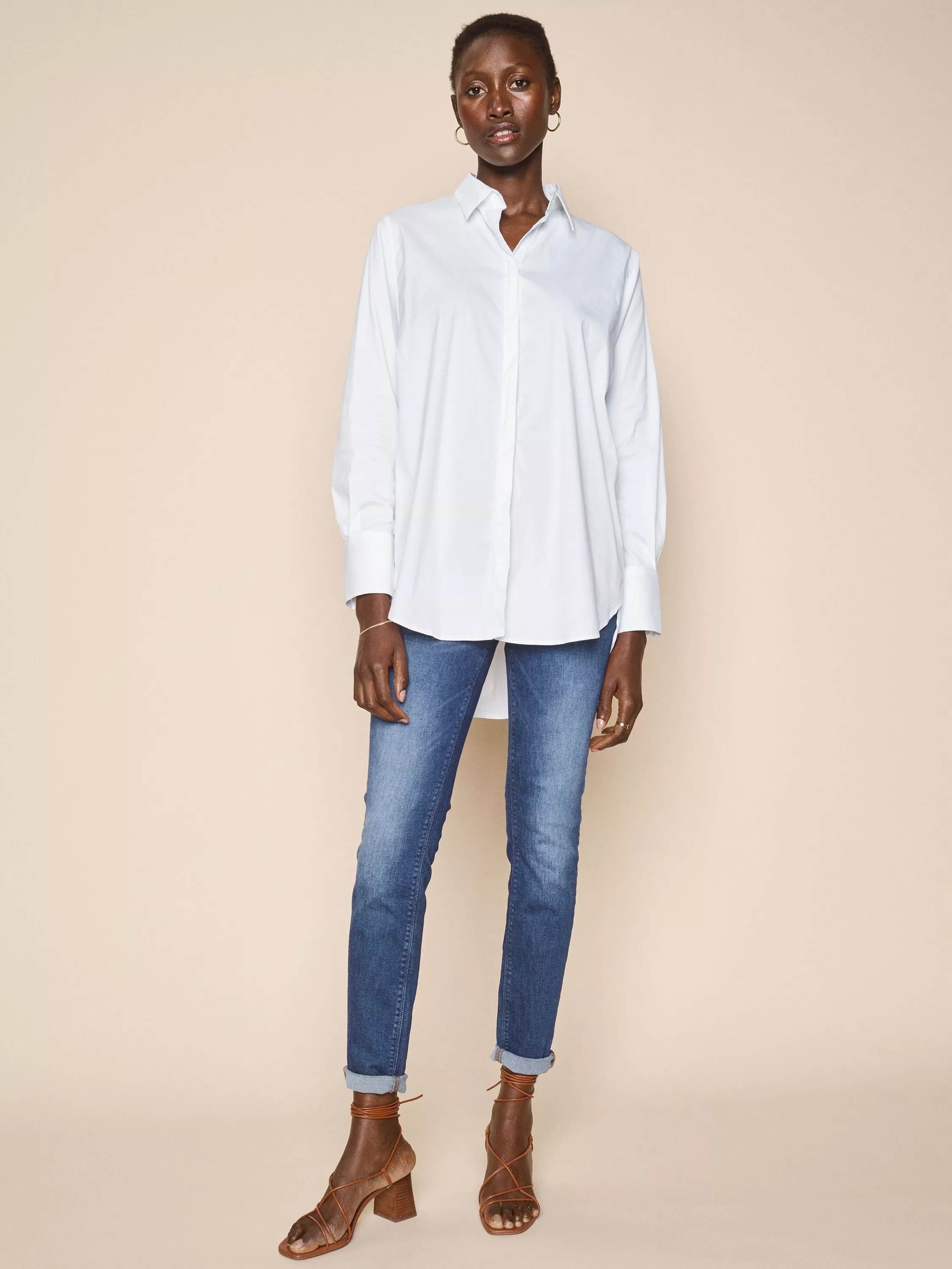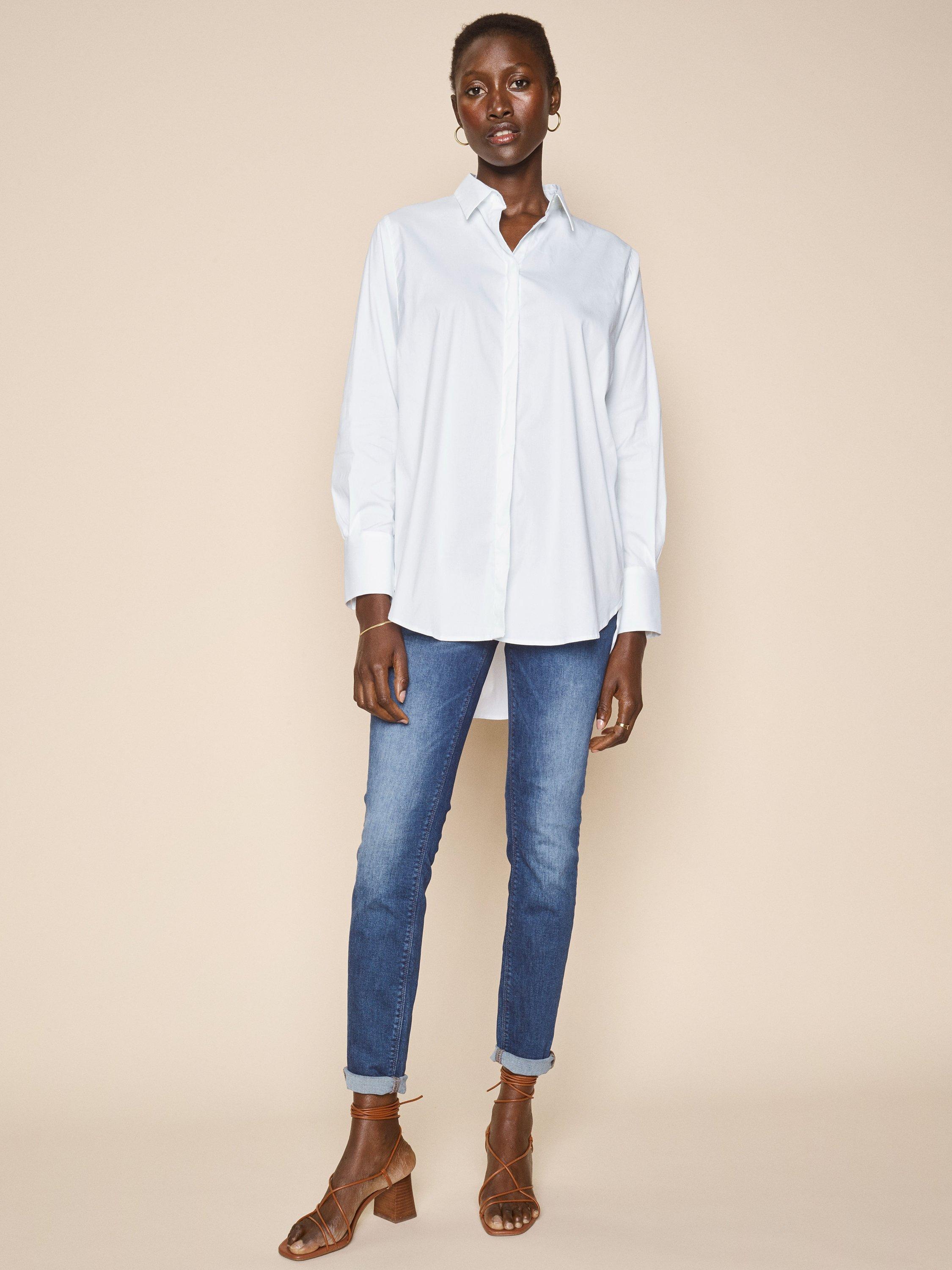 Framed with a collar neckline and long sleeves, it is made from a soft cotton blend, has a dipped hem and a pleat on the back for wider range of movement.