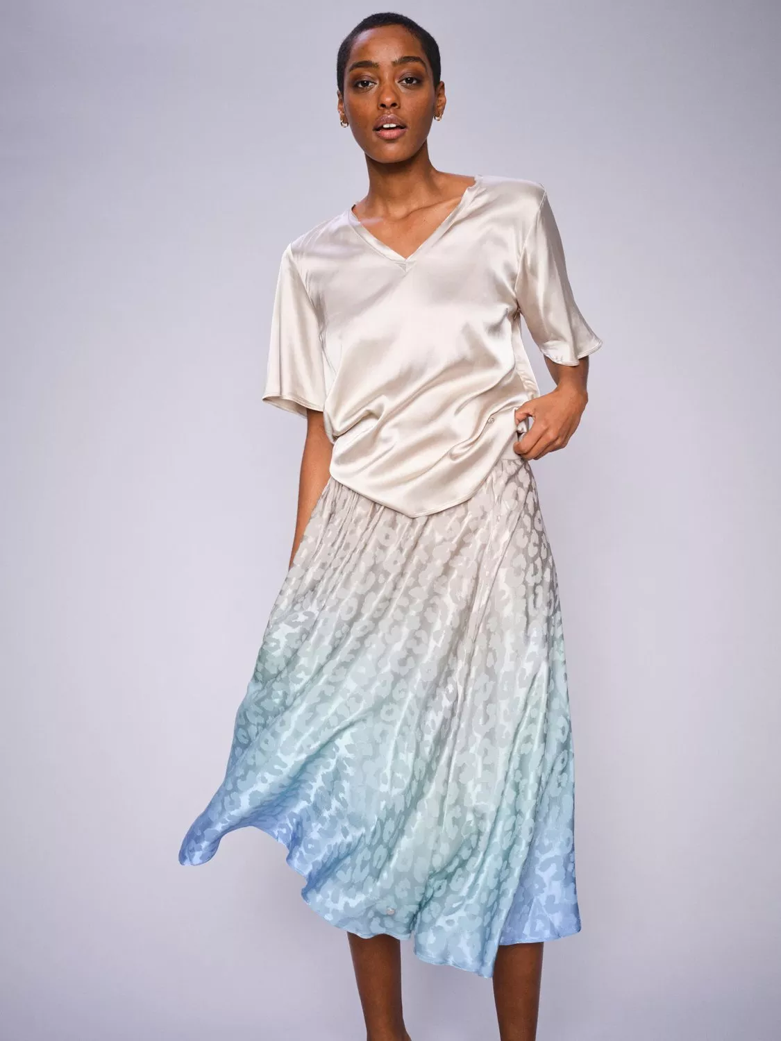 In an endlessly wearable A-line shape, this calf-grazing skirt by MOS MOSH is designed in an ombre animal print.