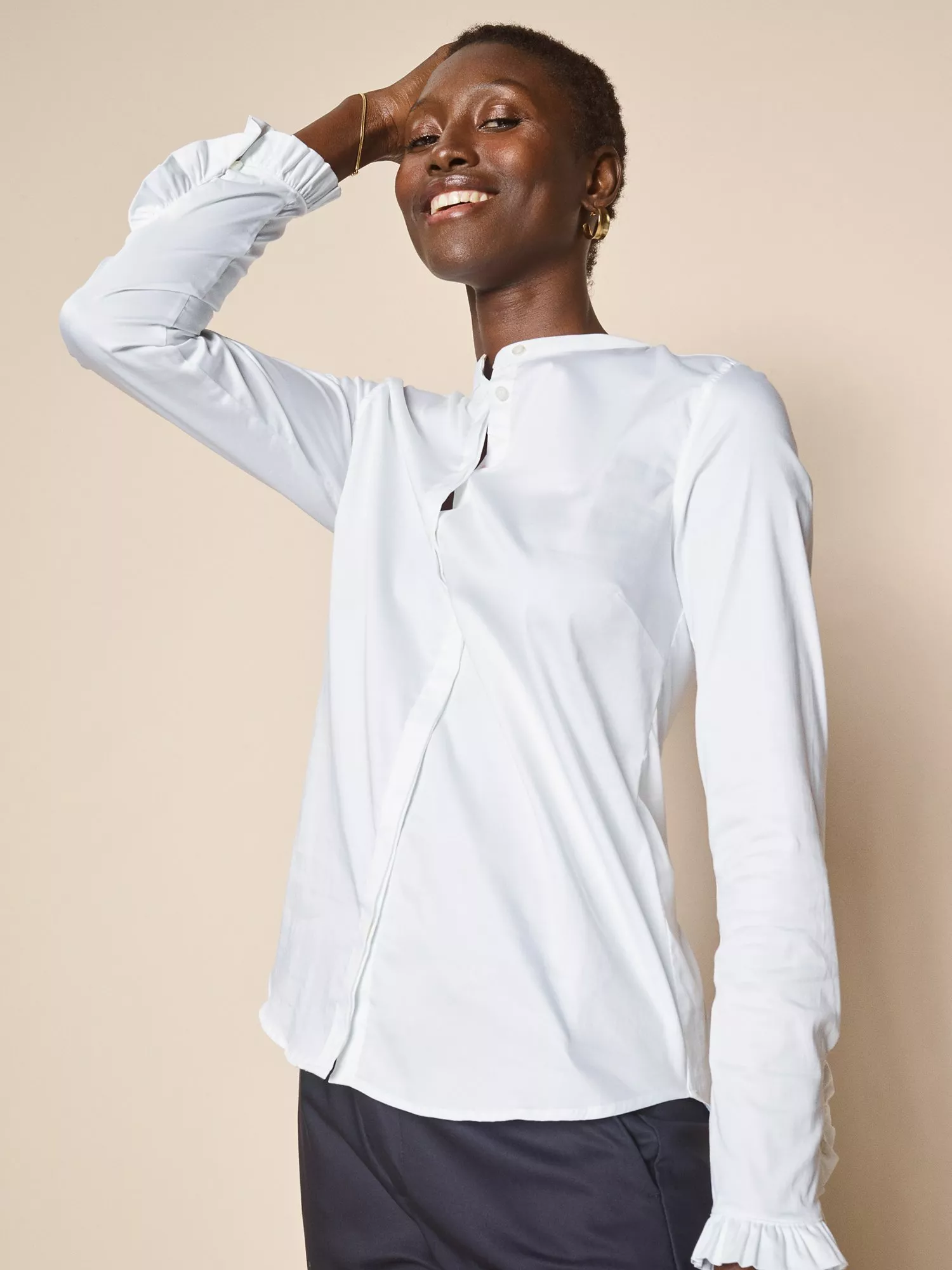 With a button-up neck and long sleeves, it is made from comfortable, cotton-rich fabric and is ideal for relaxed daytime wear.
