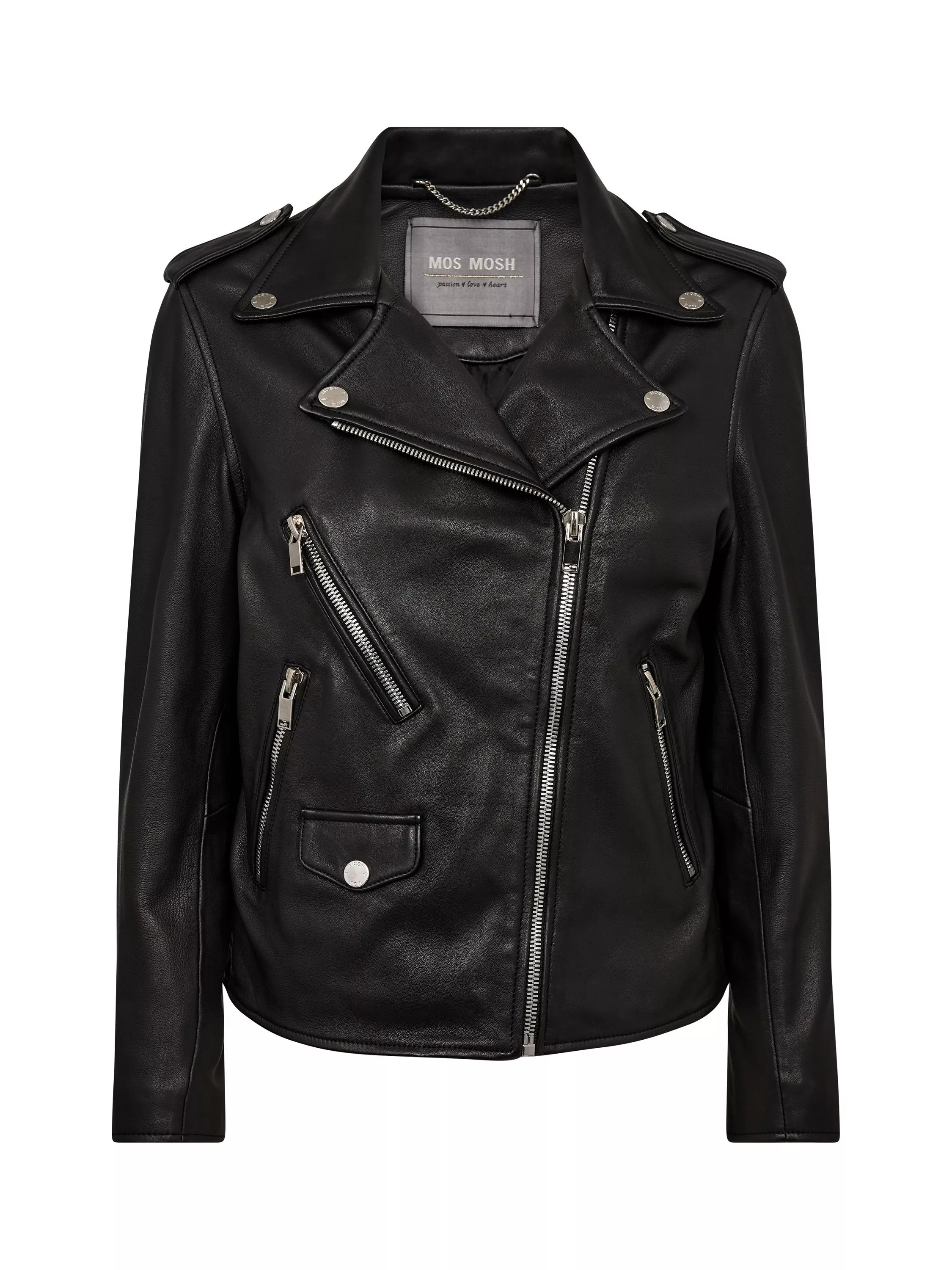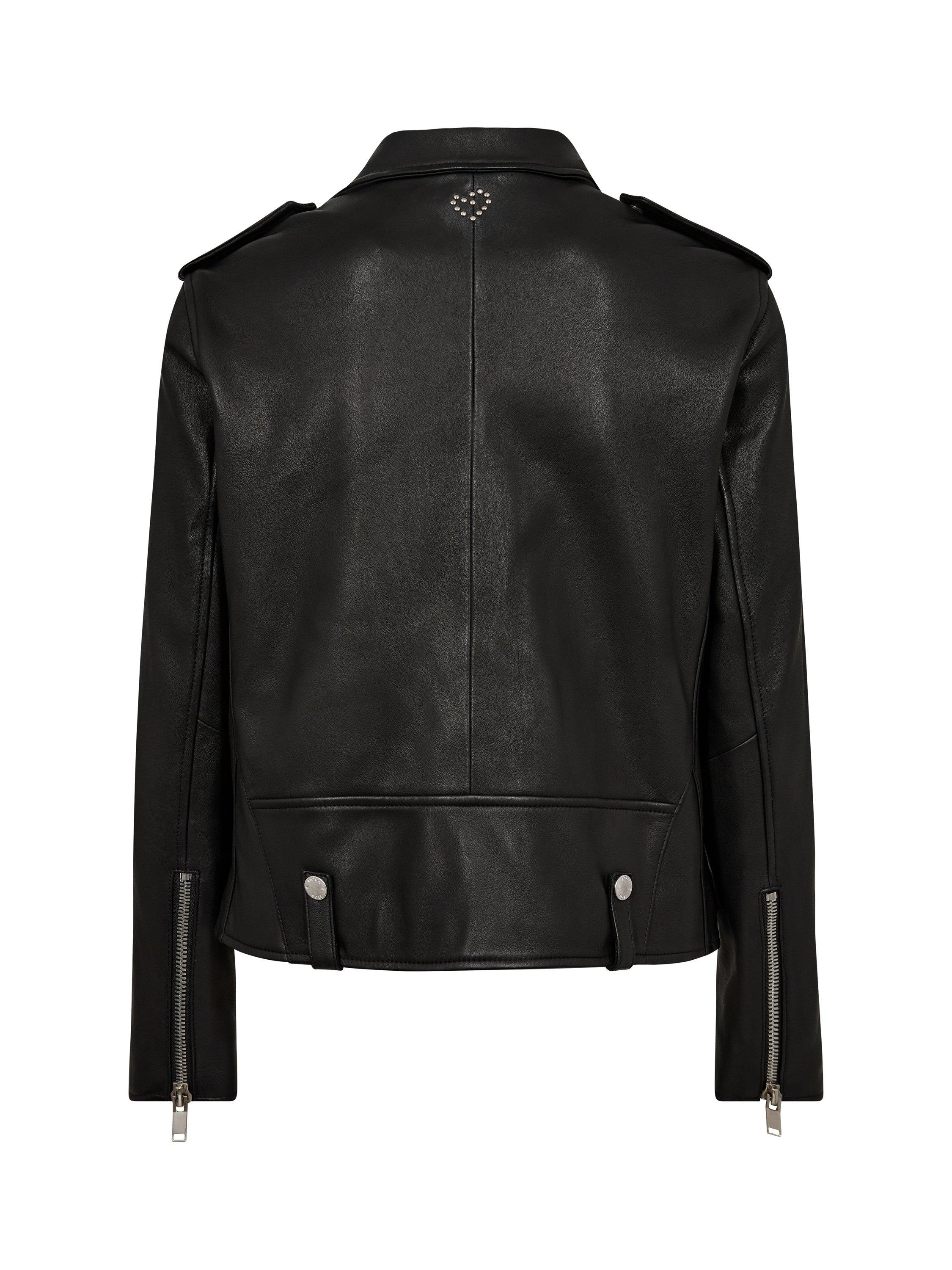 The ultimate biker leather jacket that works season after season. It's cut for a slim fit and finished with zipped cuffs that can be undone to flare out. Designed with zipped pockets and decorated with cool studs.
