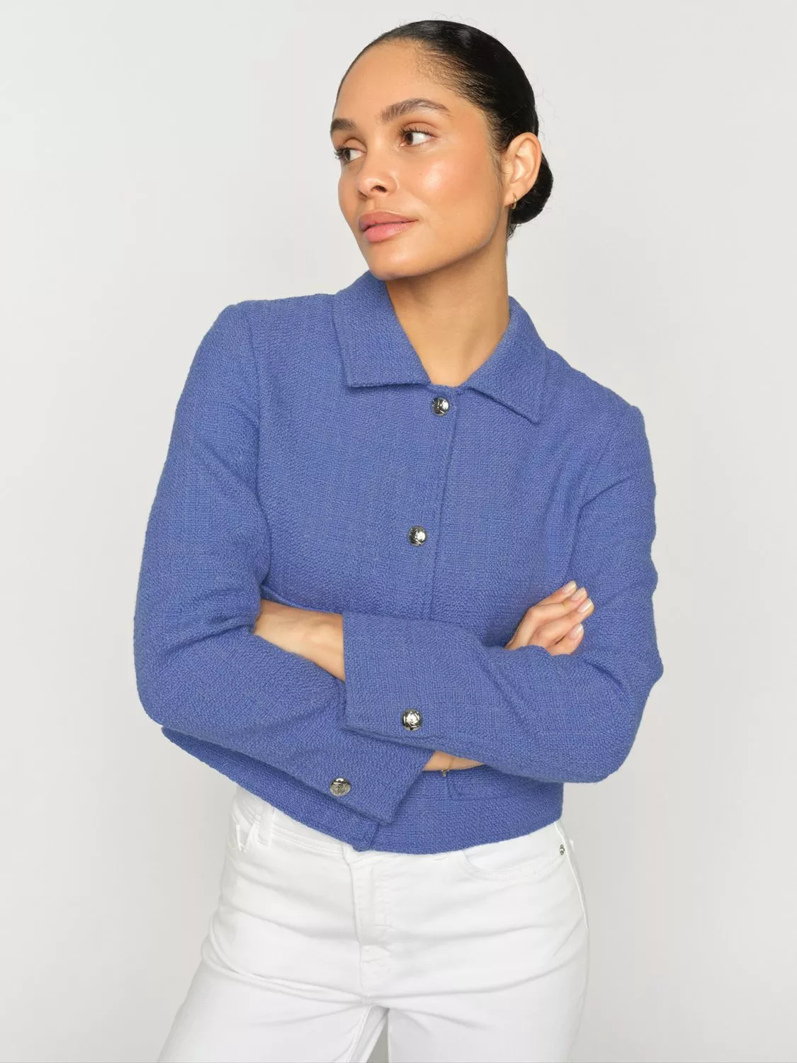 This jacket is a modern and sophisticated jacket with a classic look. It is made from a textured blend of cotton and polyester for an exclusive texture and a light, comfortable drape. The jacket has a short cut, large front pockets and beautiful button details that emphasise Mos Mosh's sense of tailoring and quality.