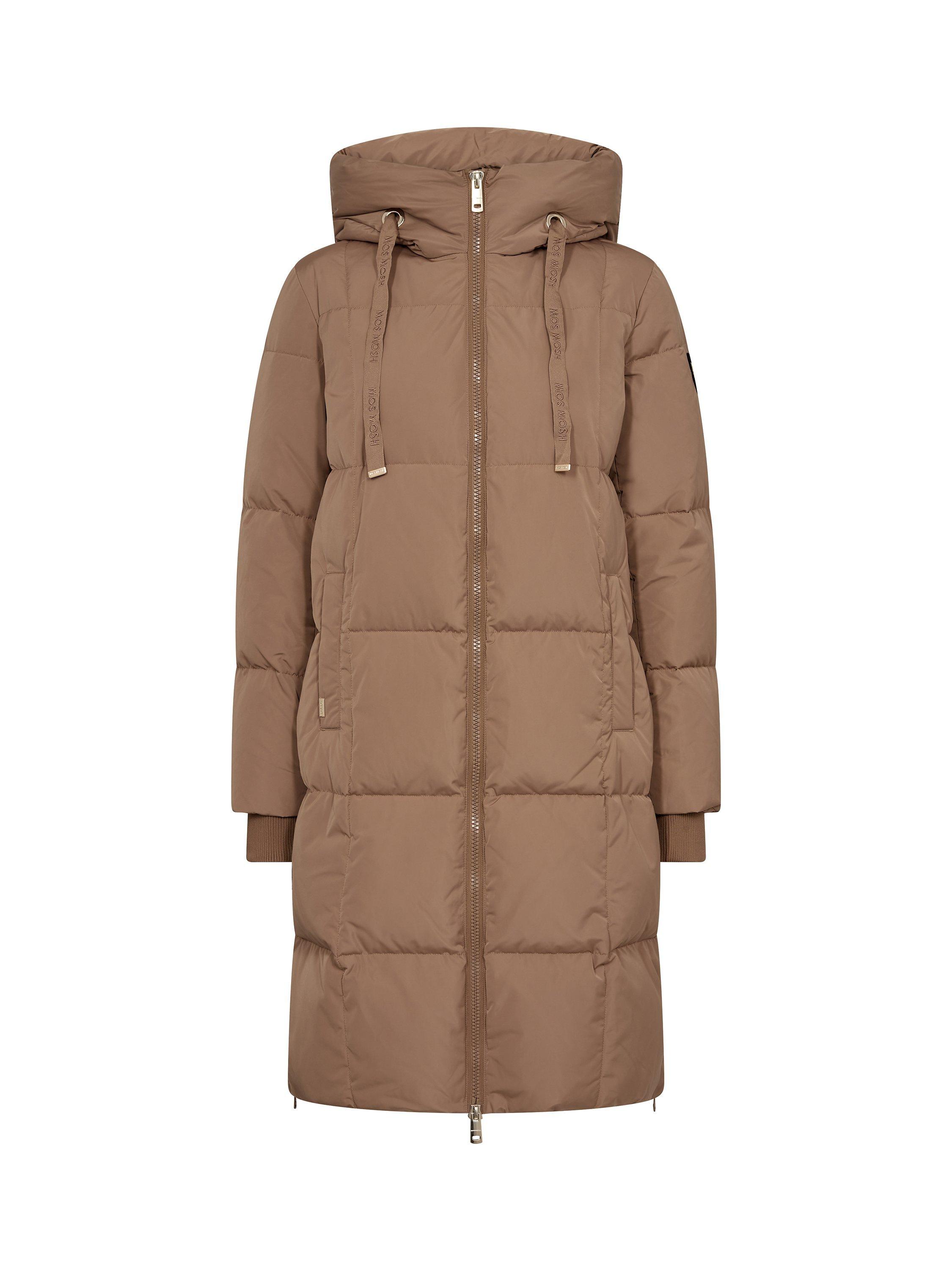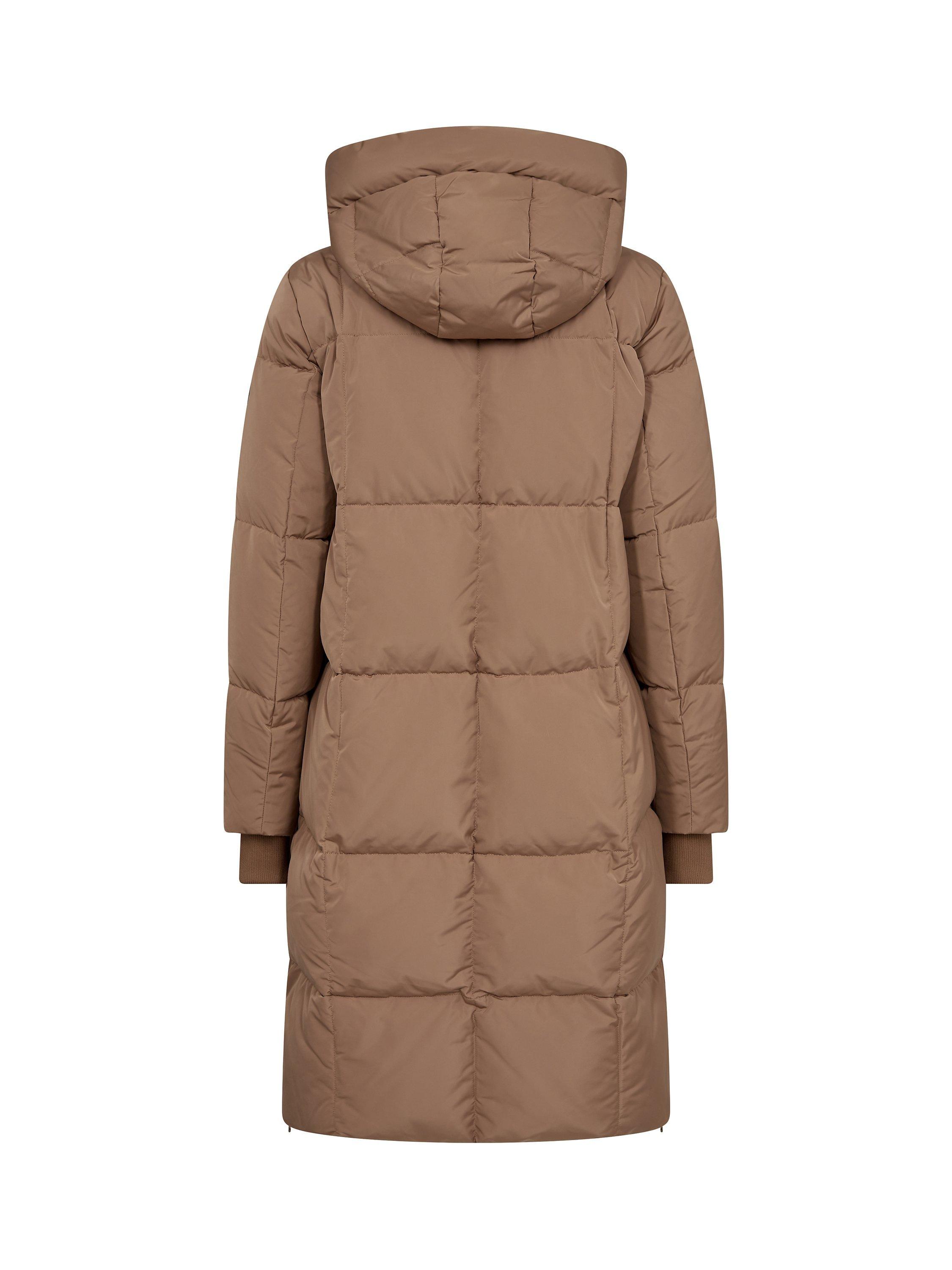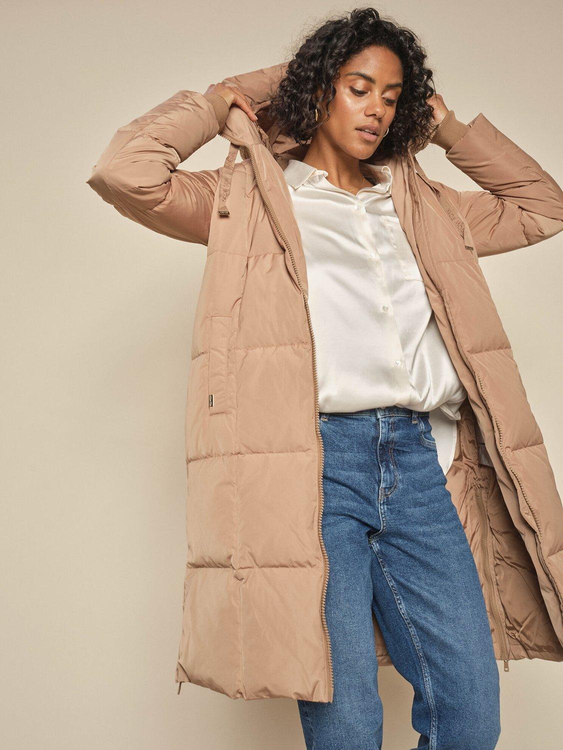 Stay warm in the chilling cold with this super lightweight, yet warm down coat. It has a long fit, hood, heavy zipper, and cool check quilted pattern, filled with down. High practical collar and side slits, making the fit extra flexible.