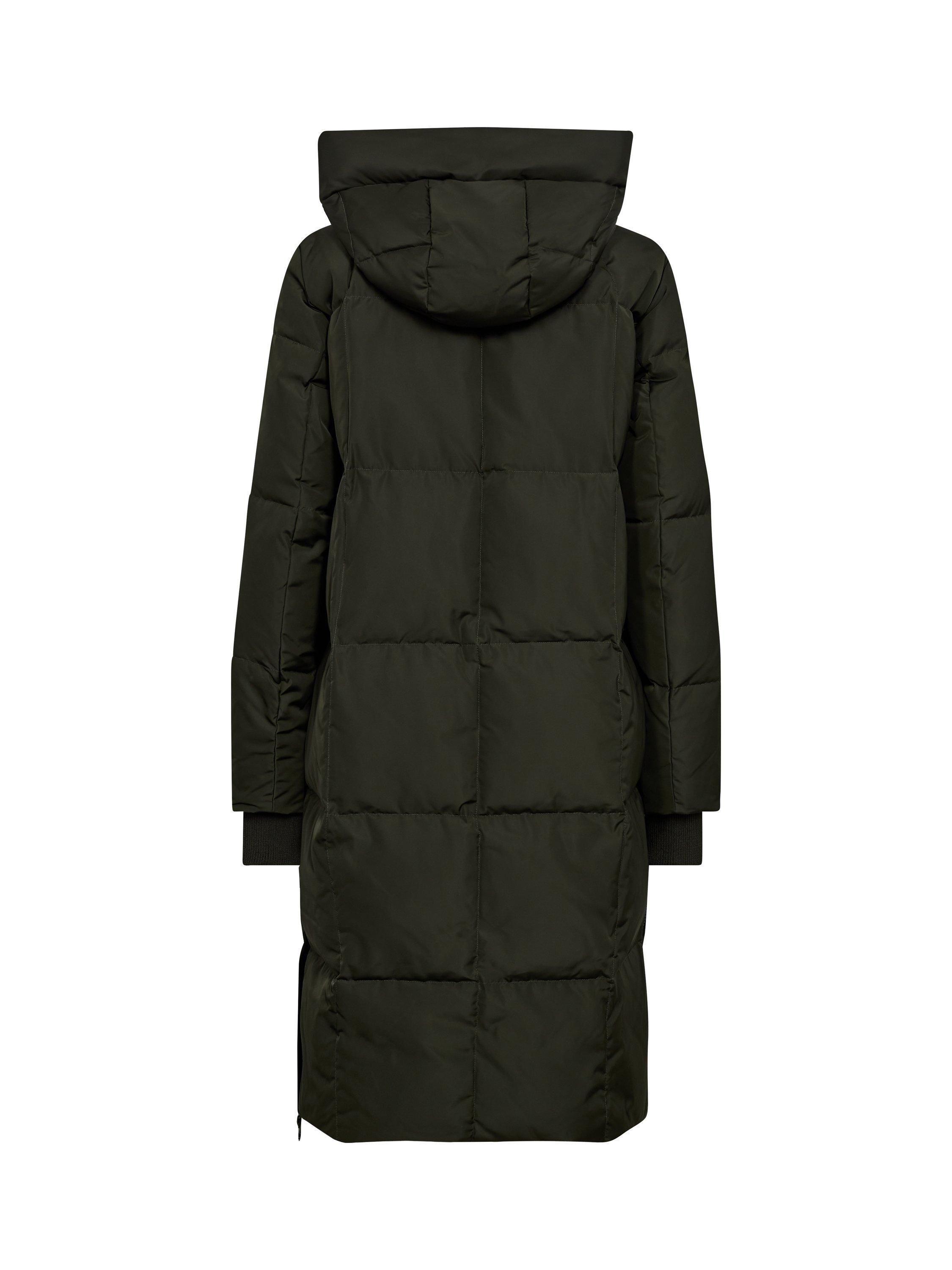 Stay warm in the chilling cold with this super lightweight, yet warm down coat. It has a long fit, hood, heavy zipper, and cool check quilted pattern, filled with down. High practical collar and side slits, make the fit extra comfortable.