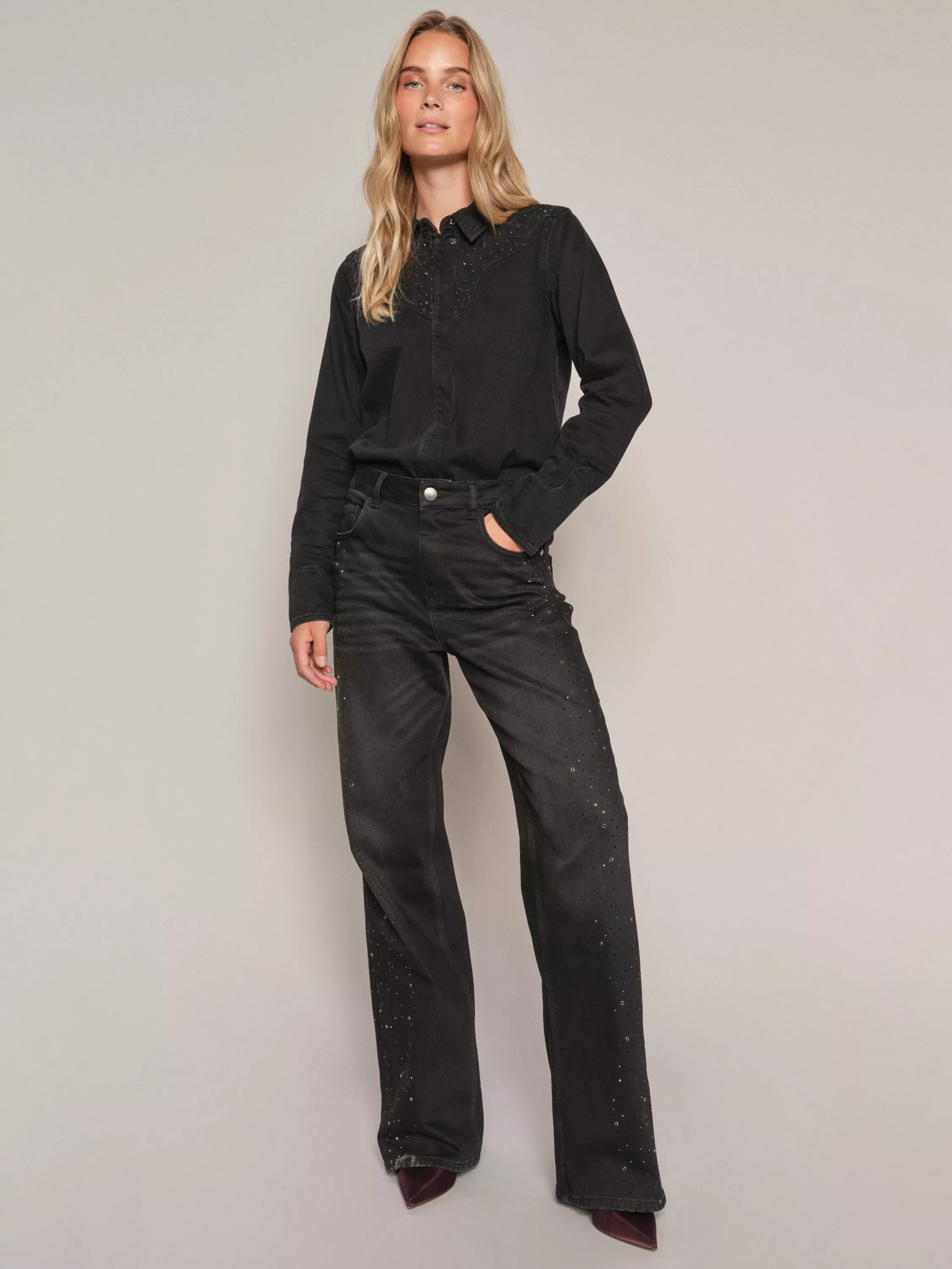 Shine bright with these cool jeans, designed in a straight fit with high rise. These are finished with rhinestone applications down the side of the legs to give them a wow effect.